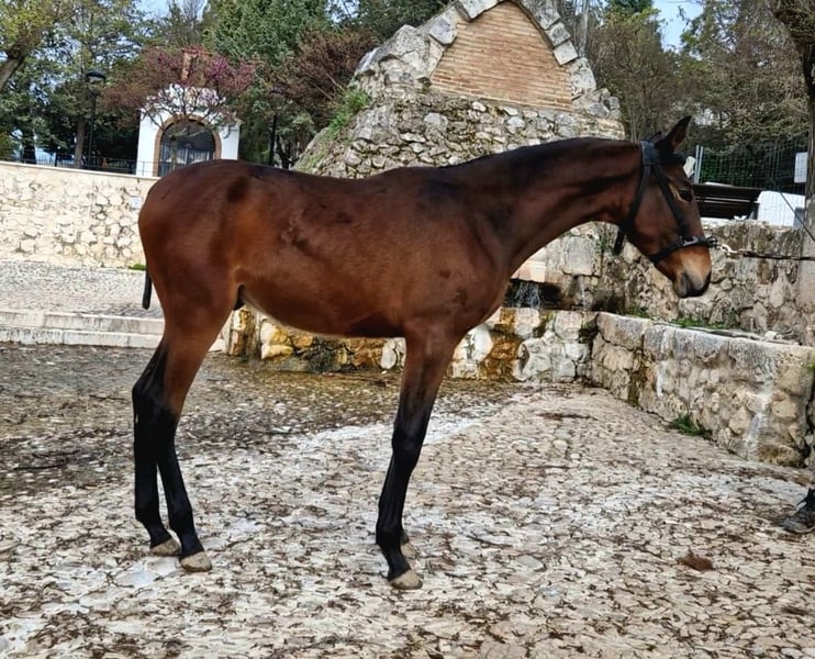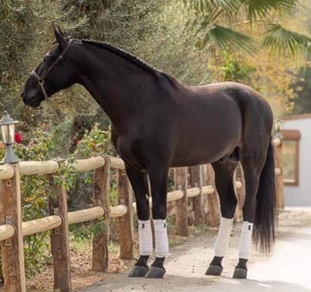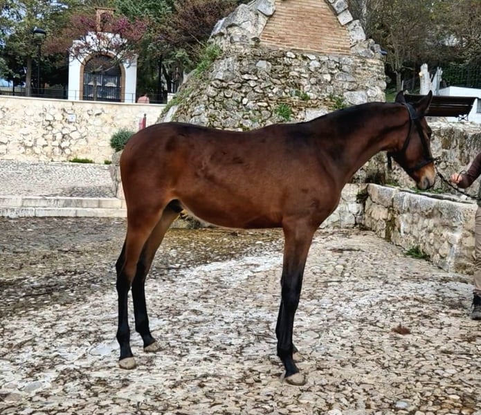 CHR Orlatino Potro PRE de 2025, castaña oscura, 173 cm de alzada final aproximada con aires especiales Magnifico potro PRE nacido en 2025, de mucha talla con una alzada final de 173 cm aprox. . Su color castaño oscuro resalta su elegancia y presencia en el paddock. Destaca por su gran estructura y cara anarnerada. Con genética inmejorable. Línea Paterna Valdeolivas, hijo de Latino CV (hermano propio de Jalisco de Marengo (Campeonndel Mundo) por Duiker Mor y Trovador IX. Línea materna, línea semental ÉLITE Americano XXXIII y Educado X. Tiene en gen Aa, con lo cual transmite capa Negra a su descendencia. Potro na ido y criado en casa particular, estando socializado a pasear en calle.