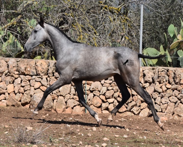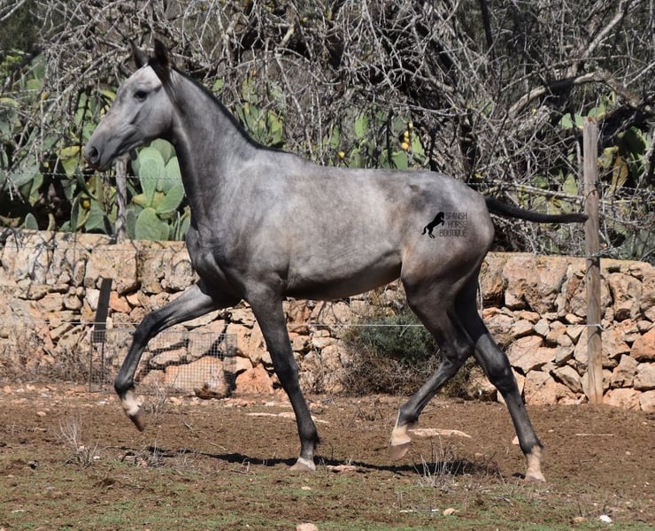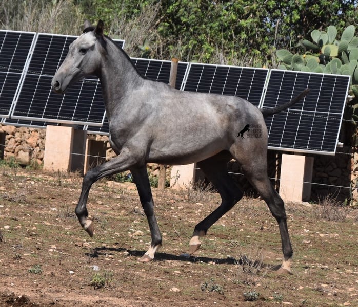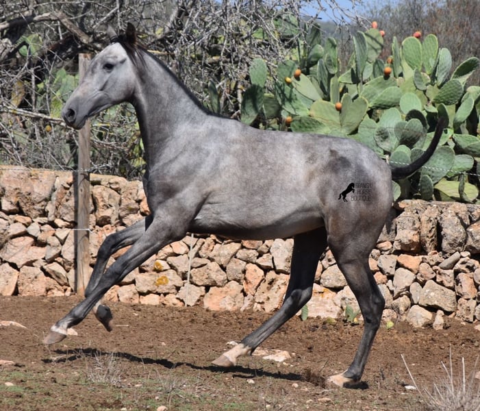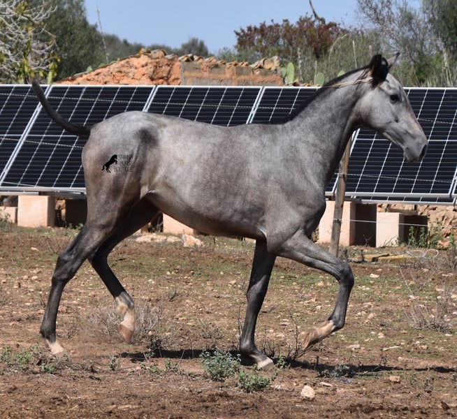 This PRE mare (Andalusian with ANCCE breed certificate), born in 05/2023, is already a magical, elegant young horse. Her pedigree is truly sensational, because on her sire's side she can be traced back to the exceptional stallion FER TEMPRANILLO, who has strongly influenced the PRE of today. On her dam's side we find the unique JUDIO VII, as well as Mejorante and Recomendado stallions! She already has great movement with lots of impulsion, despite the stony ground. But thanks to the ground and her robust attitude, she has very clear legs and good hoof quality. She lives outside 24 hours a day with a friend and is therefore well hardened in all weather conditions (it gets cold and frosty even in winter!). Her expected final height is around 160cm and she will later be open to many disciplines thanks to her good movement and agility. There is the possibility to leave her longer in Mallorca for breeding, but she would be ready to leave and come to you :) Videos and pedigree on request. Her location is Mallorca. I would be happy to organize a foal AKU on site, transport or even her trip, should you come to see her in person. Details on my site or in conversation. Saludos from Spain