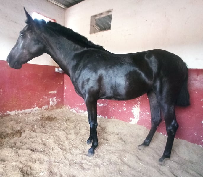 Black PRE Filly, registered with ANCCE with a certificate and good BLOODLINES. Father PEBETERO, black coat, brand Yeguada Militar, height 1.64m, and Mother RINCHA, brand Los Retamales, height 1.64m. Age 2 years and measures 1.55m. Very gentle, knows how to lunge, groom, clean hooves, bathe, braid, etc. Ideal for Classical Dressage, Working Equitation, Rejoneo, or Breeding due to her bloodlines.