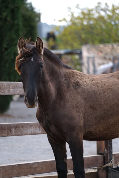 Esta hermosa yegua PRE en el color especial negra ceniza ya tiene un carisma increíble a la edad de 1,5 años y se mueve con gran elegancia, además de su gran apariencia. Una yegua joven muy especial. Tiene un carácter muy dulce y curioso y cuando la miras a los ojos, puedes ver el gran corazón que tiene. Aún está en bruto y vive en manada con otras yeguas. En el futuro podemos imaginarla en varios ámbitos, ya sea en doma clásica, equitación de trabajo, exhibición, cría o simplemente como compañera de ocio. Es una yegua joven muy especial con un gran corazón, que busca a la persona más cercana a su corazón para que puedan continuar su camino juntos. Localización: Alicante, España, se puede organizar un encuentro y transporte sin problemas.