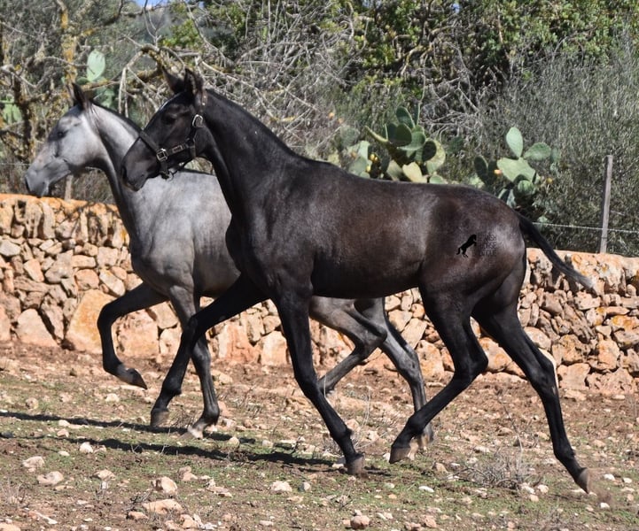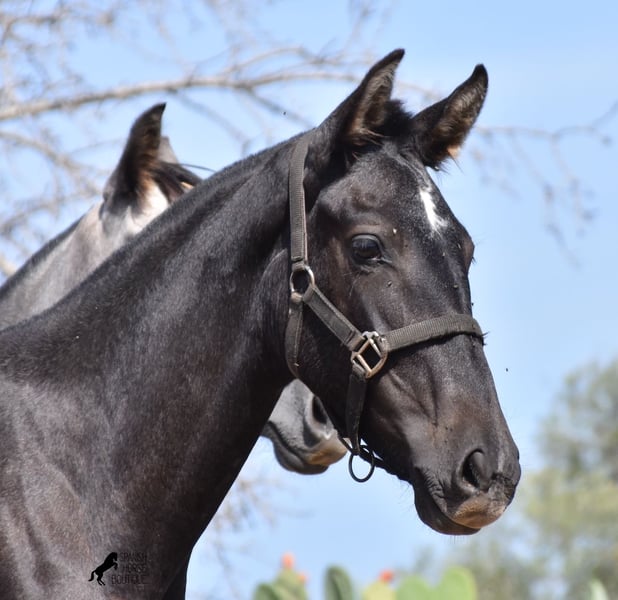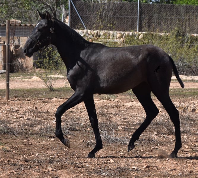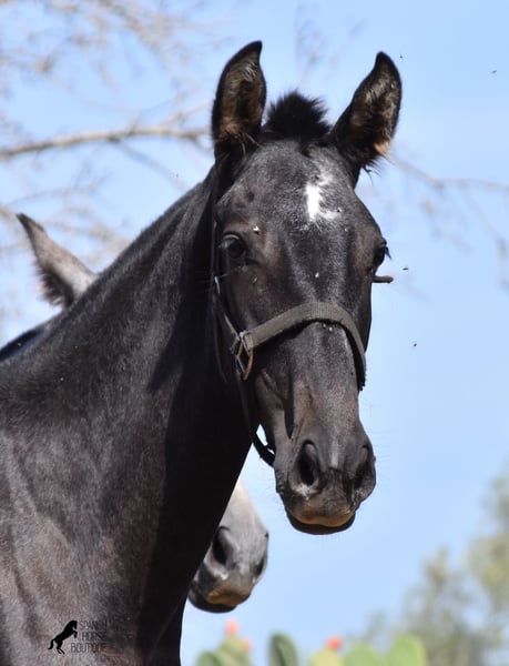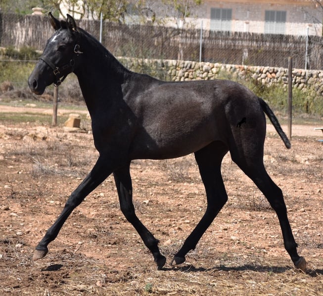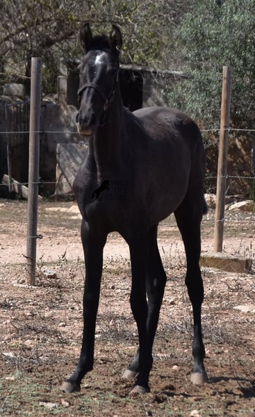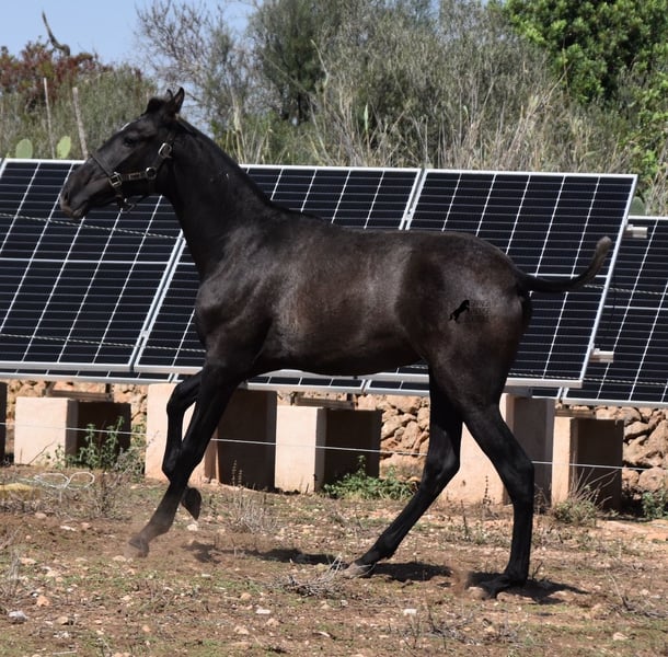 This PRE mare, born in 2023 (Andalusian with ANCCE breed certificate), is bred in the popular FERRERO line and Yeguada Militar on her father's side. This is also reflected in her open-minded and friendly character, which is immediately noticeable even though she is still completely raw. On her mother's side she is bred in modern lines, which is reflected in her size, as the young lady will certainly be 165 cm, if not more! She still has a dark coat, but she will shed. So with every coat change you have a horse with a new look ;) Thanks to the hard, stony ground and her robust attitude, she has very clear legs and good hoof quality. She lives outside 24 hours a day with a friend and is therefore well hardened in all weather conditions (it gets cold and frosty even in winter!). There is the possibility to leave her longer in Mallorca for breeding, but she would be ready to leave and come to you :) Videos and pedigree on request. Her location is Mallorca. I would be happy to organize a foal AKU on site, transport or even her trip, should you come to see her in person. Details on my site or in conversation. Saludos from Spain