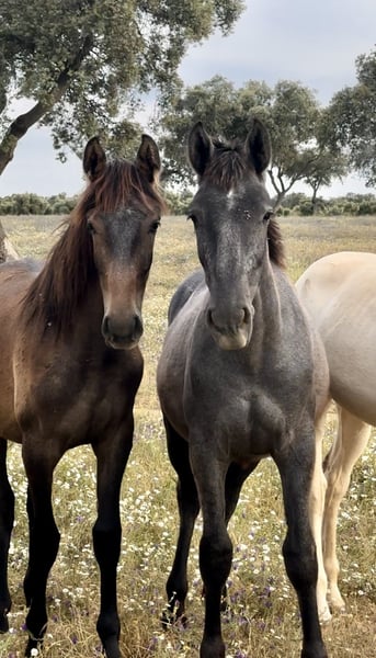Unsere wunderschönen Stutfohlen aus unserem Hannoveraner Tophengst (Fidertanz x DeNiro/ Donnerhall) werden bald ein Jahr alt. Die Mutterstuten sind von Zuchtverband der Ancce PRE Zuchtstuten. Die Rasse : Caballo de Deporte Español Sie sind wunderschön, geeignet für Dressur, Springen, Vielseitigkeit und Zucht. Der Charakter ist einzigartig nobel und lieb, ganz vom Vater abstammend und ebenso sehr Menschen bezogen! Sie stammen aus besten Verhältnissen und wachsen in Freiheit auf. Fragen Sie gerne alle weitere persönlich: + 49 171 528 48 65 Wir sprechen Deutsch, Spanisch und Englisch. Ich freue mich auf Ihren Anruf!