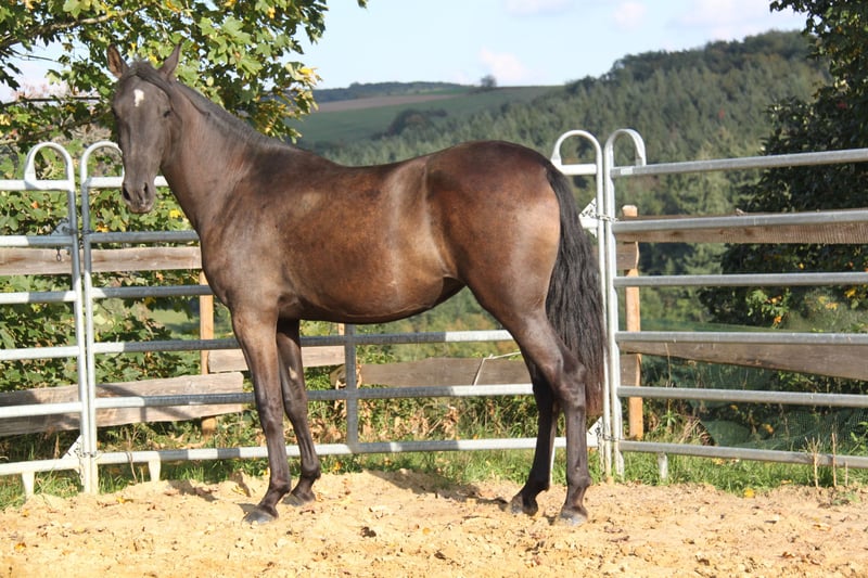 Vanwege het verkleinen van onze stal geven we onze Afamada in liefdevolle handen. Afamada is geboren op 14 oktober 2022 en is een zachte, gevoelige en zeer aanhankelijke jonge merrie met geweldige bewegingen. Bij de grondwerk en aan de longe toont ze zich leergierig en zeer intelligent. We schatten haar eindhoogte op 1,61 - 1,63 m, momenteel is ze vooraan 1,58 m groot. Ze is nog in de groei en achter iets overbouwd. Afamada is een geweldige vrijetijdspartner, maar ook zeer interessant voor de fokkerij (ze heeft volledige papieren van de ANCCE). Ze heeft een Pearl-gen en een klein "e" (gencode ggaaEePrl), waardoor ze - afhankelijk van de hengstkeuze - veulens van alle kleuren kan krijgen! Haar vader (laatste foto's) is een zoon van Bronco PM en een kleinzoon van de beroemde Revoltoso XXIX van de gerenommeerde kleurfokker Paco Marti. Afamada loopt onbevangen en heeft zeer goede hoeven. Ze staat het hele jaar door op de wei met toegang tot de open stal en hooi. In de kudde heeft ze een lagere rang. We wensen voor Afamada een rustige persoon die haar de nodige veiligheid biedt. Dan is ze een absoluut droom- en betrouwbaar paard dat haar mens elke wens van de ogen afleest. Bij serieuze interesse in deze geweldige merrie zijn we telefonisch bereikbaar op 01520 433 4848 en via WhatsApp op 0179 922 4436.