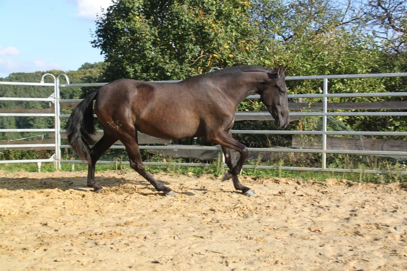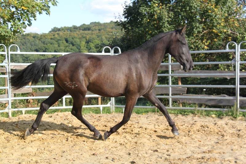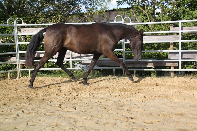 Wegen Bestandsverkleinerung geben wir unsere treue Afamada in liebevolle Hände ab. Afamada wurde am 14. Oktober 2022 geboren und kam mit acht Monaten vom Züchter in Spanien zu uns. Seitdem lebt sie in unserer Stutenherde auf der Weide mit Zugang zum Paddock mit Unterstand und Heu. Sie ist eine sanfte, sensible und sehr anhängliche junge Stute mit traumhaften Bewegungen. Bei der Bodenarbeit und an der Longe zeigt sie sich lernbereit und sehr intelligent. Ihr Endmaß schätzen wir auf 1,63 m, aktuell ist sie 1,60 m groß. Afamada ist ein toller Freizeitbegleiter, der in der Freiarbeit, Bodenarbeit, der Working Equitation, aber auch als Freizeitpferd ein treuer und zuverlässiger Partner sein wird. Sie ist aber auch für die Zucht (sie hat volles Papier der ANCCE) sehr interessant. Sie hat ein Pearl-Gen sowie ein kleines "e" (Gen-Code ggaaEePrl), so dass sie - je nach Auswahl des Hengstes - Fohlen aller Farben bekommen kann! Ihr Vater (letzte Fotos) ist Sohn von Bronco PM und Enkel des berühmten Revoltoso XXIX des renommierten Farbzüchters Paco Marti. Afamada läuft barhuf und hat sehr gute Hufe. In der Herde ist sie rangniedrig. Wir wünschen uns für Afamada einen gelassenen Menschen, der ihr die nötige Ruhe und Sicherheit gibt. Dann ist sie ein absolutes Traum- und Verlasspferde, das ihrem Menschen jeden Wunsch von den Augen abliest. Bei ernsthaftem Interesse an dieser tollen Stute sind wir telefonisch oder per WhatsApp unter 0179 922 4436 erreichbar. Bitte keine Nachrichten über ehorses schicken, da uns diese oft nicht erreichen.
