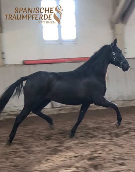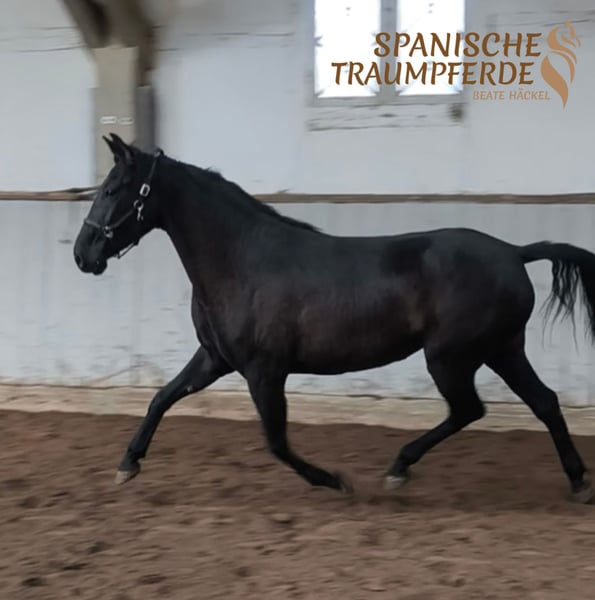 PRE-Stute QUINTA SH – Eleganz und Charme in Rappfarbe Unsere wunderschöne PRE-Stute QUINTA SH, geboren im Jahr 2020 möchte von Traventhal aus ihren Herzensmenschen finden. Mit ihrem komfortablen Stockmaß von 159 cm vereint sie barocke Eleganz mit kraftvoller Präsenz. Ihr wundervolle glänzendes, lackschwarzes Fell unterstreicht ihre Ausstrahlung und macht sie zu einem echten Blickfang. Diese barocke Schönheit besticht durch ihren angenehmen Charakter und ihr freundliches, höfliches Wesen. Sie ist angeritten, gesund und bereit für den weiteren Weg im Freizeitbereich, im Dressursport oder in der Zucht. Bei Interesse oder für weitere Informationen stehe ich gerne, auch telefonisch, zur Verfügung. Ein Kennenlernen unsere QUINTA SH ist nach Absprache möglich.
