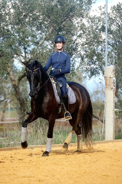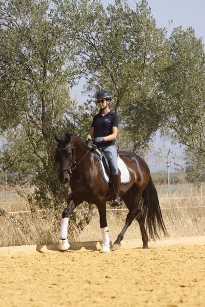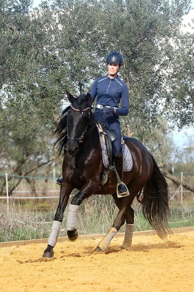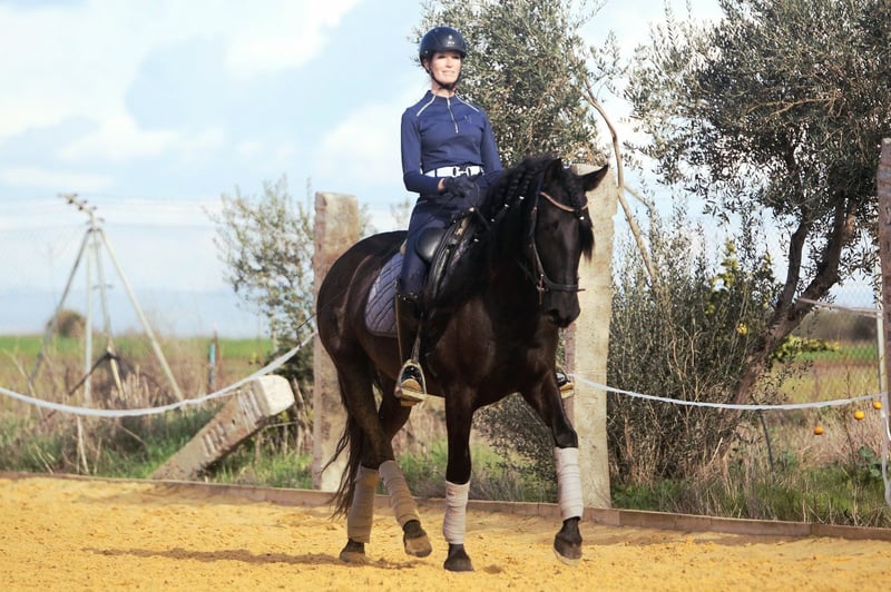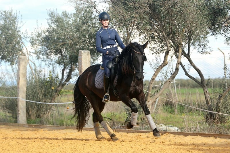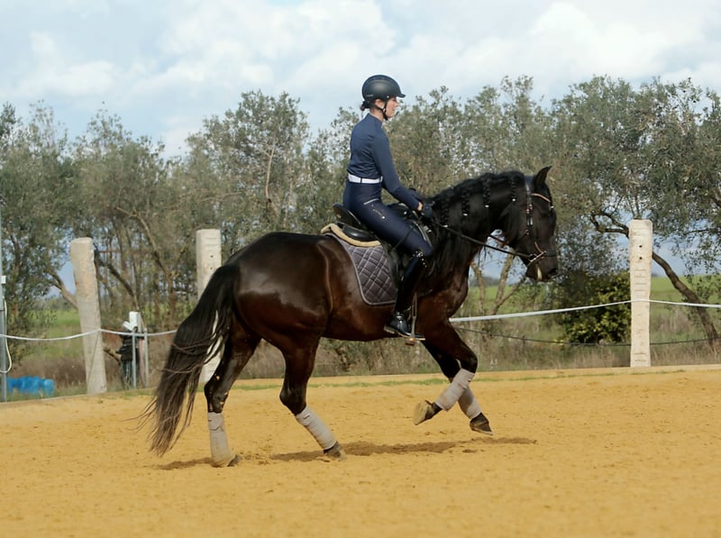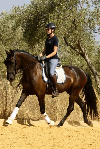 Mandela is an impressive registered PRE mare, born in May 2021. This elegant black mare captivates with her graceful appearance and friendly nature. Standing at 162 cm, she is the ideal companion for leisure riding. She is still growing and appears much larger due to her broad build. Her sire is a proven breeding stallion from Yeguada Militar (Nelson XIII), with over 170 cm in height. Thanks to her pedigree, Mandela is also very interesting for breeding purposes. This young lady is eager to learn and curious, ready to explore the world with her new owner. Over the past few months, she has been gently built up musculally and gradually backed. She now calmly walks the dressage basics, is beginning lateral movements and walk-trot-walk transitions, and has already been ridden in the arena and on the trail. She is friendly, brave, and follows her handler with great trust. She gets along well with other horses, is stabled at night, and is used to being outside during the day, but she is also comfortable staying in a herd overnight. Her balanced temperament and sweet nature make her a perfect partner for both training and relaxed rides or adventures. If you are looking for a loyal, refined leisure partner who impresses with both beauty and character, this PRE mare might be the perfect horse for you. Don’t miss out! The price will increase as her training progresses. ;) She is located with me in Seville, Andalusia. Mandela can be visited by appointment. She can also stay with us for further training. AKU and transport can be arranged. For more information, please contact me in 🇩🇪🇫🇮🇪🇸🇬🇧🇧🇶. -------- For more information about this beautiful 4-year-old PRE mare, please get in touch with me!