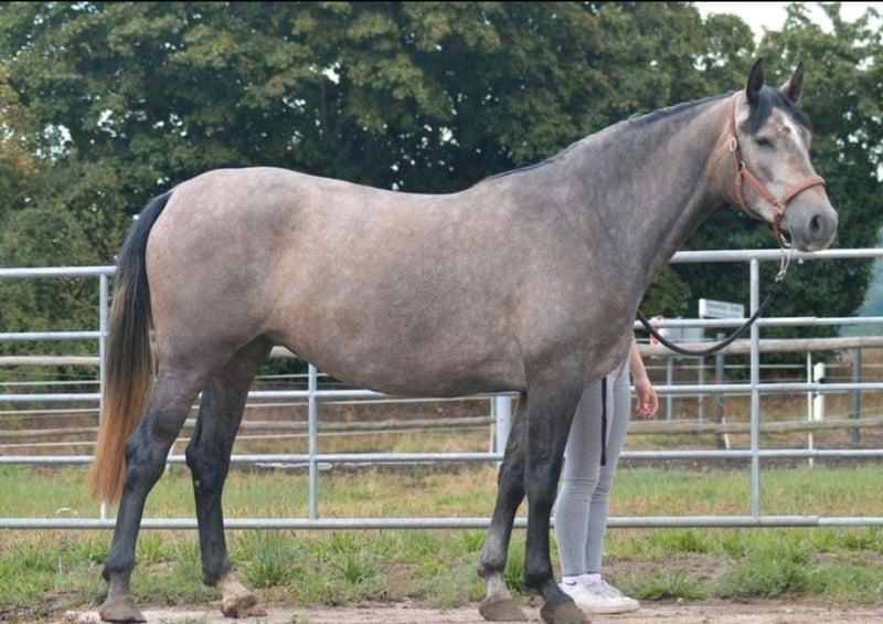 Zum Verkauf steht eine beeindruckende PRE-Stute, geboren im Jahr 2022. Sie ist ein Schimmel und wird ein Stockmaß von 165 cm erreichen. Mit ihrer eleganten Erscheinung und ihrem ausgezeichneten Bewegungsablauf zieht sie alle Blicke auf sich. Diese junge Dame ist ein hervorragendes Dressurpferd. Sie zeigt bereits jetzt vielversprechende Anlagen und ist bereit, mit dem richtigen Partner an ihrer Seite, ihre Fähigkeiten weiter zu entwickeln. Sie ist gut erzogen, menschenbezogen und zeigt sich stets lernwillig und aufmerksam. Sie ist aus unserer eigenen Zucht und bei und geboren und aufgewachsen. Sie lebt in einer Herde mit anderen Stuten und Fohlen. Bitte kontaktieren Sie uns für weitere Informationen und um einen Besichtigungstermin zu vereinbaren. Wir freuen uns darauf, Ihnen diese außergewöhnliche Stute vorzustellen.