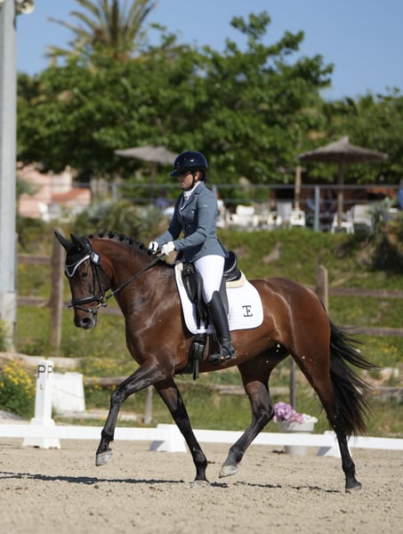 Belle pouliche PRE, âgée de 4 ans, avec un niveau 1 de dressage. Super caractère en piste avec d'autres chevaux, à la campagne, avec le maréchal-ferrant et lors du transport. Elle est très disposée au travail et a beaucoup d'énergie, ainsi qu'un super caractère. C'est une bonne jument d'avenir pour le sport. Elle a des plaques OK et est négative au Piro.