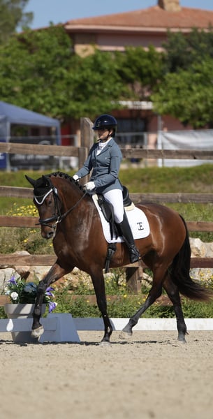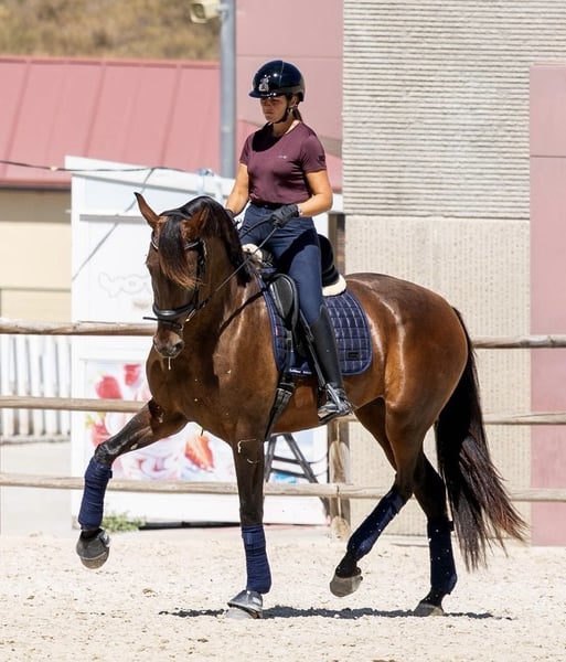 Prachtige PRE-merrie van 4 jaar oud, met niveau 1 van dressuur. Super karakter op de piste met andere paarden, in het veld, bij de smid en tijdens het transport. Ze is zeer bereid om te werken en heeft veel energie, en een geweldig karakter. Het is een goede merrie voor de toekomst in de sport. Ze heeft OK-platen en is negatief op Piro.