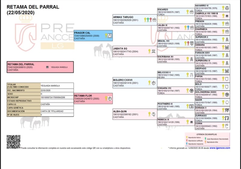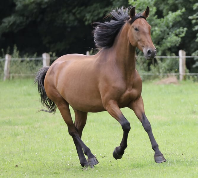 Retama del Parral est une magnifique jument pure PRE avec des papiers ANCCE complets. Sa lignée est indiquée sur ses papiers. Élevée dans une excellente ferme, protégée sur de vastes terrains. Jument expressive avec des allures supérieures à la moyenne. Corps harmonieux avec une base solide et saine. Avec sa taille imposante de plus de 1,65 m, elle convient aussi bien pour la Working Equitation exigeante, le dressage que pour le loisir haut de gamme. Un véritable joyau pour la reproduction. Elle connaît déjà le poids d’un cavalier et peut rester en Allemagne pour une formation complémentaire, contre rémunération. Actuellement, elle évolue dans un petit troupeau et se montre très sociable. Pour toute demande sérieuse, n'hésitez pas à me contacter par message ou téléphone pour plus d’informations !
