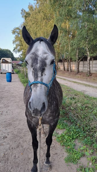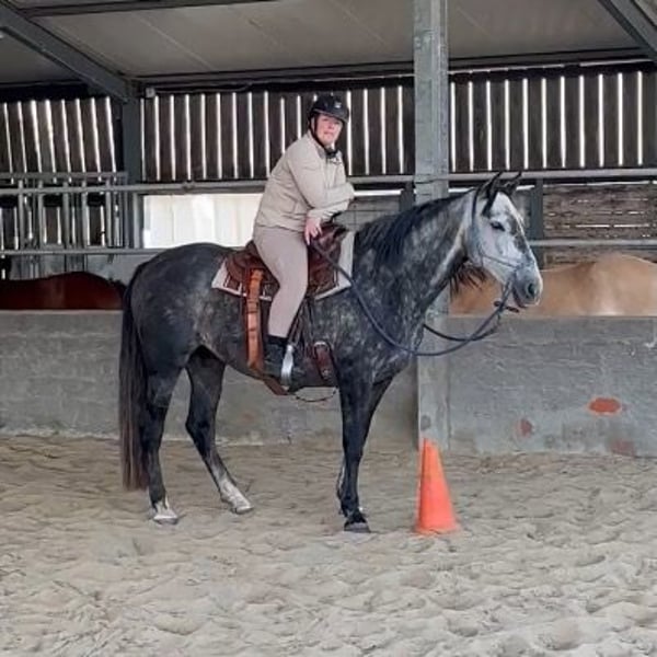 Sol (Wenne WH) ist eine 6-jährige PRE-Schimmelstute von ca. 1,55 m, derzeit in professioneller Parelli-Ausbildung bei Fien De Baere (Pony Connect - Deinze). Horsenality: LBE. Sie lernt schnell, denkt mit und bleibt emotional verfügbar.