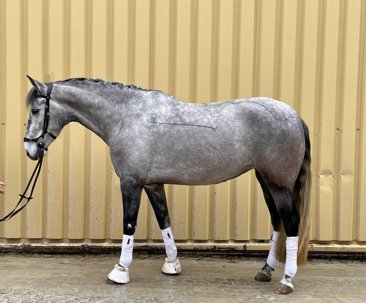 🐴 PRE-Spanierstute, 5 Jahre, 1,60 m – vielseitiges Reitpferd Basisinformationen • Rasse: PRE / spanischer Typ • Geschlecht: Stute • Alter: 5 Jahre • Stockmaß: ca. 1,60 m • Farbe: Schimmel ⸻ Beschreibung Diese elegante junge PRE-Stute überzeugt durch ihre schöne Ausstrahlung sowie ihr angenehmes und ehrliches Wesen. Sie ist kopfklug, menschenbezogen und sehr kooperativ und zeigt sich sowohl im Umgang als auch unter dem Sattel unkompliziert. Unter dem Reiter präsentiert sie sich rittig, fleißig und angenehm zu sitzen. Sie verfügt über schöne Grundgangarten und arbeitet motiviert mit. Besonders in der Dressurarbeit macht sie viel Freude, da sie sich gut an die Hilfen stellen lässt. Auch kleine Sprünge meistert sie brav, wodurch sie sich insgesamt als vielseitiges Reitpferd eignet. Im Gelände ist sie zuverlässig, sowohl alleine als auch in der Gruppe. Verkehr, Feldwege und Ausritte kennt sie und zeigt sich dabei gelassen. Im täglichen Umgang ist sie freundlich, unkompliziert und sehr menschenbezogen. ⸻ Weitere Informationen • gesund • regelmäßig geritten • schmiede- und verladefromm • herdenverträglich 📹 Umfangreiche Videos von Reiten, Gelände und Handling vorhanden. 🩺 Ankaufsuntersuchung (inkl. Röntgen) selbstverständlich möglich. 🐎 Probereiten 30 € (wird beim Kauf verrechnet). 🚚 Transport kann bei Bedarf organisiert werden. Weitere Informationen oder Videos gerne auf Anfrage.