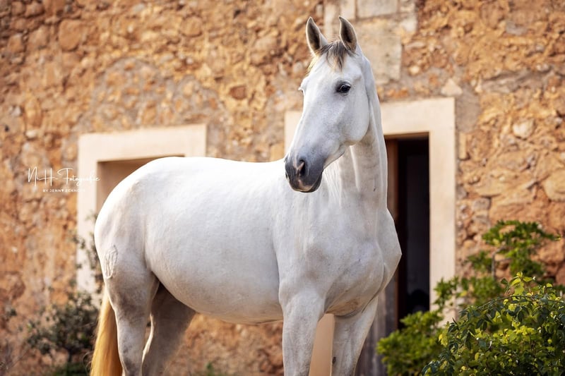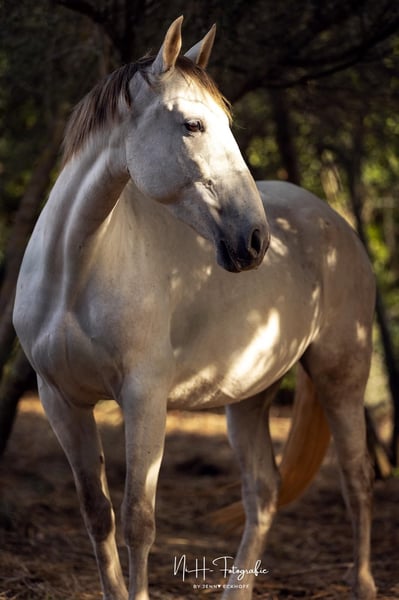 Beautiful 5-year-old mare, directly from the breeder. On the sire's side, she is a descendant of Vagabundo XII, son of the renowned breeding stallion Digital. Her grandsire on the dam's side is Fer Tempranillo. Promesa exhibits very elegant movements. She has been ridden in basic gaits: walk, trot, and canter. Promesa has been dewormed, her teeth have been checked, and she is familiar with farrier work and loading training. We see this young mare as an excellent leisure horse with a focus on dressage. Due to her excellent pedigree, she is also suitable for breeding. For interested buyers, overnight accommodation is available. We are happy to organize transportation.