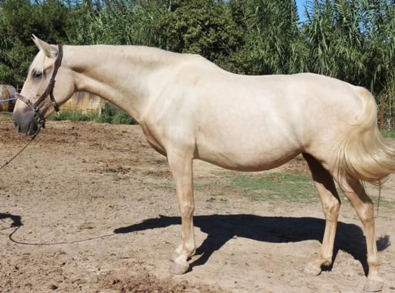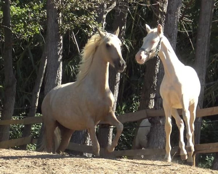 Identity 2056 : Wunderschöne gekörte PRE Palomino Zuchtstute mit allerbestem Charakter und einem wunderschönen Cremello Stutföhlchen . Mutter und Tochter stehen zum Verkauf , beide sind sehr gut erzogen und verfügen über einen exzellenten Charakter , werden liebevoll gehalten . Keinerlei Unarten vorhanden . Das Stutfohlen ist ein Traum , ist 6 Monate alt und die Mutter ist 2019 geboren . Identity 2056: Beautiful licensed PRE Palomino broodmare with the very best character and a beautiful Cremello filly. Mother and daughter are for sale, both are very well trained and have excellent characters, and are lovingly cared for. No bad habits whatsoever. The filly is a dream, is 6 months old, and the mother was born in 2019.