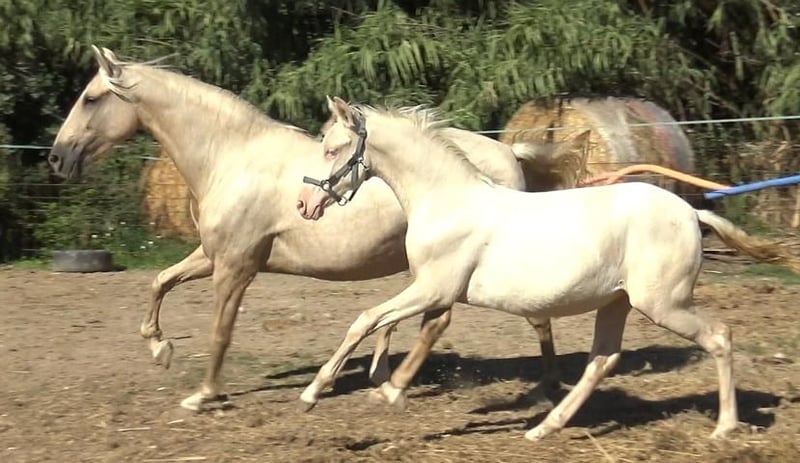 Identity 2056: Piękna, ogierowana klacz PRE Palomino z najlepszym charakterem oraz piękne źrebię Cremello. Matka i córka są na sprzedaż, obie są bardzo dobrze ułożone i mają doskonałe charaktery, są troskliwie pielęgnowane. Nie mają żadnych złych nawyków. Źrebię to marzenie, ma 6 miesięcy, a matka urodziła się w 2019 roku.