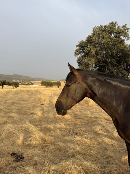 Jument PRE pleine de ventre à vendre à un prix exceptionnel ! Nous proposons ici une jument PRE brute et pleine de ventre. Nous nous en séparons car nous réorganisons complètement nos lignées de reproduction, ce qui explique sa mise en vente. CE N'EST ABSOLUMENT PAS UNE VENTE D'URGENCE ! Elegida est une jument foncée et calibrée, dotée d’un caractère irréprochable. Elle est très proche de l’humain et toujours très attentive. La monte, que nous pouvons également prendre en charge, ne devrait poser aucun problème. Elle est actuellement pleine. Le père du poulain est Maradona, également visible sur les photos ci-dessous. Il est lui aussi présent sur notre élevage et a déjà engendré de nombreux foals. Son tempérament est irréprochable. Ce cheval représente une opportunité exceptionnelle, tant par son prix que par la qualité de ce que l’on reçoit ! Il n’y a absolument rien à redire. Cela s’explique notamment par le fait que tant la jument que le père du poulain disposent d’un pedigree sans faille. De Escalera à Yeguada Militar, tout ce qui a de la renommée et du prestige est représenté. N’étant pas des marchands et aimant profondément nos chevaux, nous ne vendons en aucun cas à des marchands ou des écoles d’équitation. Le prix est hors frais, livraison en Allemagne.