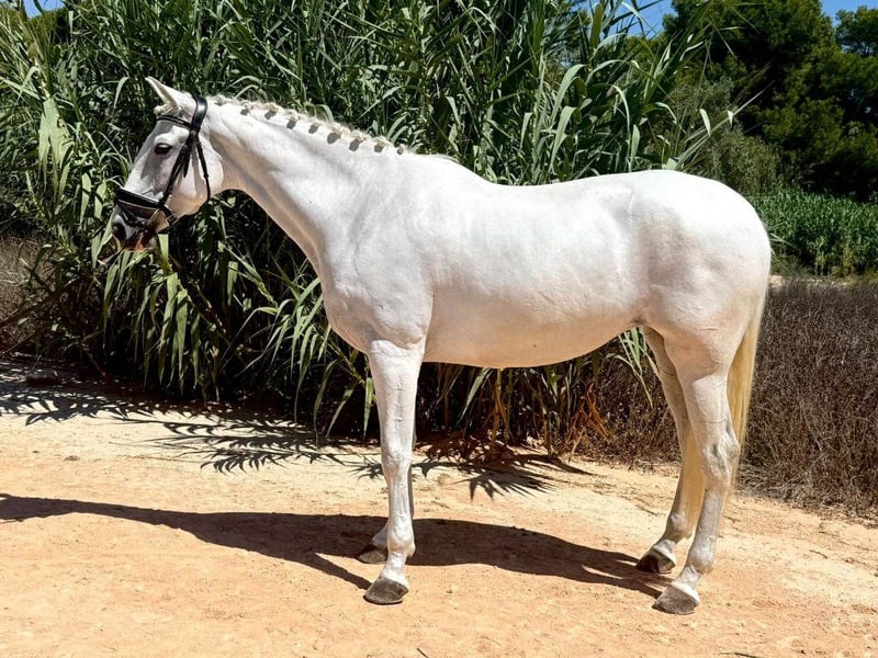 Wij presenteren een merrie van het Pura Raza Española (PRE), geboren in 2017, die alle kwaliteiten bezit die de hoogstaande exemplaren binnen de klassieke dressuur onderscheiden. Met een schofthoogte van 163 cm heeft ze een harmonieuze en elegante uitstraling die nog verder wordt versterkt door haar nobele en evenwichtige karakter, wat haar een ideale metgezel maakt, zowel in het dagelijkse werk als op de wedstrijdbaan. Momenteel voert ze alle oefeningen uit die behoren tot het Grand Prix-niveau, waarbij ze opvalt door haar concentratievermogen, leergierigheid en een buitengewone werkhouding. Ze beheerst op natuurlijke wijze de verzamelde gangen, piaffe, passage en wissels, en toont bovendien een grote controle in pirouettes en overgangen. Deze soepelheid, samen met haar elasticiteit en bewegingsvrijheid, maken haar een merrie met een enorm sportief potentieel. Wat betreft haar gezondheidstoestand, is ze negatief voor piroplasmose, wat haar in staat stelt om zonder beperkingen naar elke plek ter wereld te reizen. Hoewel ze geen recente röntgenfoto's heeft, zijn er in haar jonge jaren uitgebreide onderzoeken uitgevoerd, waarbij ze volledig gezond bleek te zijn zonder relevante bevindingen. Het betreft dus een merrie die de genetische en morfologische kwaliteit van de PRE combineert met een uitstekende dressuurniveau, een onberispelijk karakter en een zeer interessante potentie voor degenen die op zoek zijn naar een veelzijdig exemplaar dat klaar is om zowel in de competitie als in de selectieve fokkerij te schitteren.