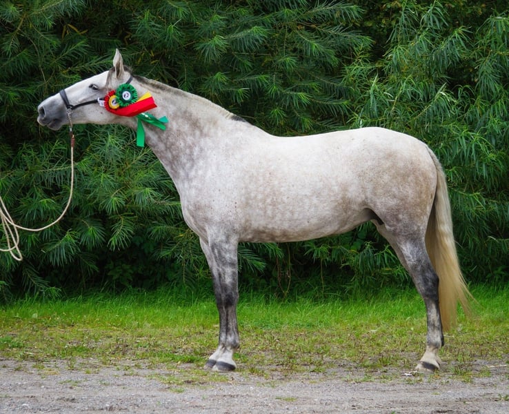 WYJĄTKOWA MARE PRE NA SPRZEDAŻ Duquesa CB II - jedna z najlepszych klaczy PRE w Danii. PODSTAWOWE INFORMACJE • Nazwa: Duquesa CB II • Wiek: 9 lat • Wzrost: 167 cm • Kolor: Szary • W ciąży z prestiżowym ogierem Monje II - termin porodu w kwietniu 2025. Wideo: https://www.facebook.com/reel/1642203446358184 OSIĄGNIĘCIA • DAMOCHA 2024: Mistrzyni Klaczy i Najlepsze Ruchy w Klasie • DAMOCHA 2022: Mistrzyni Klaczy • SICAB 2018: Zajęła 16. miejsce spośród 50 dwuletnich klaczy • Córka (urodzona w 2023) Najlepsza Klacz Roczna na DAMOCHA 2024 (również po Monje II) LINIE KRWI • Ojciec: Simpatico de Millan III (Joven Reproductor Recomendado) • Dziadek: Legendarny Fer Bago - dwukrotny Mistrz SICAB ZDROWIE I OBSŁUGA • Kompletnie zdrowa i w dobrej kondycji • Niedawno szczepiona (styczeń 2025) • Bez podków • Czyste rentgeny z 2022 roku • Łatwa w obsłudze w codziennych czynnościach: o Spokojny i wrażliwy temperament o Łatwo wsiada o Łatwa w utrzymaniu ZASTOSOWANIE Duquesa CB II to idealna klacz dla poważnego hodowcy, który chce wzmocnić swój program hodowlany klaczą mistrzowską najwyższej jakości. Jej wyjątkowy ruch, udokumentowane osiągnięcia na pokazach oraz znakomite potomstwo czynią ją rzadką okazją.