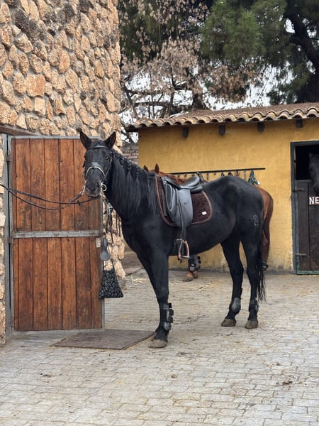 Caballo muy versátil para campo y pista. Está muy entrenado en rodajes de cine ha participado en cuatro películas y muy buen carácter entre otros Caballos.