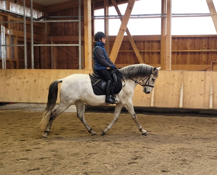 ROSSO ist ein wunderschöner, sehr eleganter P.R.E. Apfelschimmel Wallach. Seine Ruhe und Gelassenheit lassen auch einem noch etwas unsicheren Reiter sehr schnell Vertrauen zu diesem Prachtburschen fassen. ROSSO verzeiht Reitfehler und pariert durch, wenn er merkt, dass sein Reiter unsicher wird. ROSSO ist sehr leichtrittig und äußerst bequem zu sitzen. Er hat drei wunderschöne Grundgangarten. ROSSO ist sehr menschenbezogen und liebt es betüddelt zu werden. Besonders liebt er u. a. die Arbeit mit Kindern und Jugendlichen. Ob im Viereck, Allwetterplatz oder im Gelände, ROSSO geht gut vorwärts, ist nicht triebig, aber auch nicht zu flott unterwegs. ROSSO ist ein Pferd, dass sich den Ansprüchen seines Reiters anpasst, der sich auf seinen Reiter einstellt. Nicht nur unter dem Sattel, sondern auch bei der Bodenarbeit und im alltäglichen Umgang vermittelt ROSSO durch sein gutmütiges Gemüt Sicherheit und zeigt auch sein großes Vertrauen zum Menschen. ROSSO empfiehlt sich besonders für den Umsteiger vom Pony zum Pferd. ROSSO lebt bei uns in einer gemischten Offenstallherde und verträgt sich sehr gut mit seinen Artgenossen. ROSSO kennt auch Boxenhaltung, für die er ebenfalls sehr gut geeignet ist. ROSSO, ein Pferd, dass seinen Menschen nicht jeden Tag vor neue Herausforderungen stellt. Nähere Informationen über unsere Pferde und unsere Arbeit erhalten Sie unter 0171/5269002 Hubert Seitle und 0151/12775701 Uta Großmann. Allgemeine Informationen über unsere Pferde und unsere Arbeit erhalten Sie auch unter www.ps-seitle.de