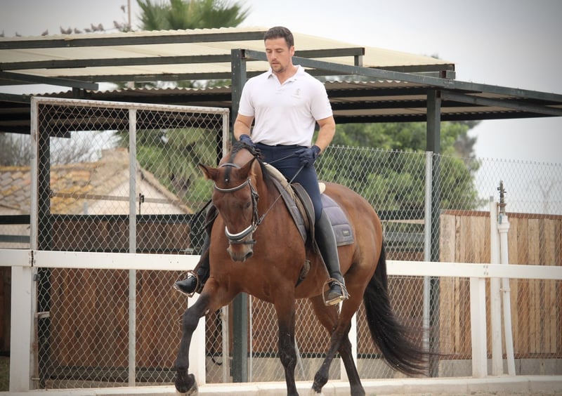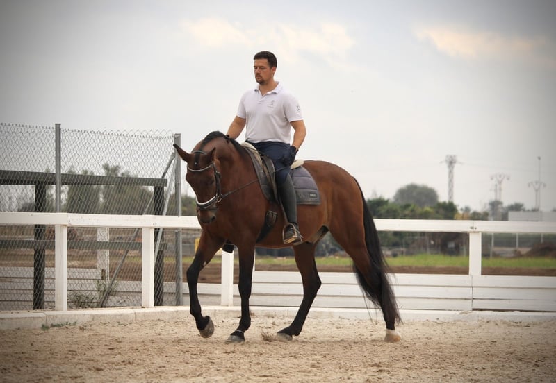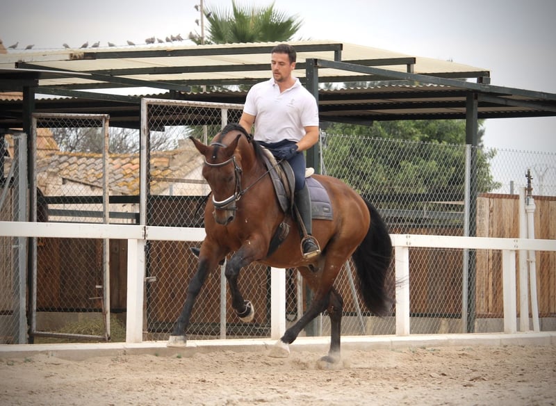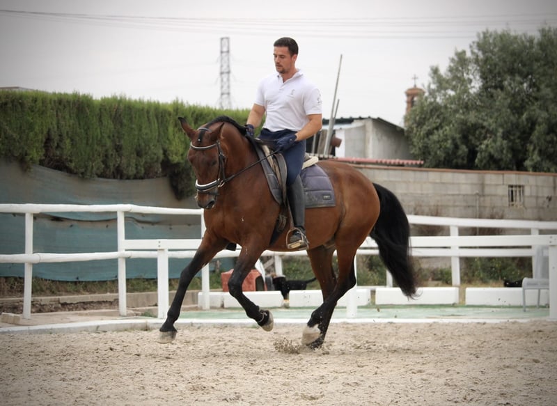 Dieser schicke Wallach macht auf dem Dressurplatz eine richtig gute Figur! ORIENTE zeigt eine hervorragende Qualität im Gangwerk, wie sie nur wenige PRE mitbringen. Der tolle 12jährige Wallach ist absolut korrekt auf Wassertrense geritten und beherrscht außer den Geundgangarten auch Schenkelweichen, Schulterherein, Traversalen in allen GGA, sowie Rückwärtsrichten und Schritt-Galopp-Übergänge. Dabei ist er ein echter Hingucker, der an Ausstrahlung und Eleganz so einiges zu bieten hat! Im Gelände ist ORIENTE ebenfalls absolut zuverlässig und kennt es, alleine und in der Gruppe auszureiten. Auf Grund seines sensiblen Charakters und Arbeitswillens sucht er einen feinfühligen und erfahrenen Reiter, der ihn entsprechend fördern kann. Aktuelle Videos sind vorhanden. Standort Spanien. Volles ANCCE-Papier.