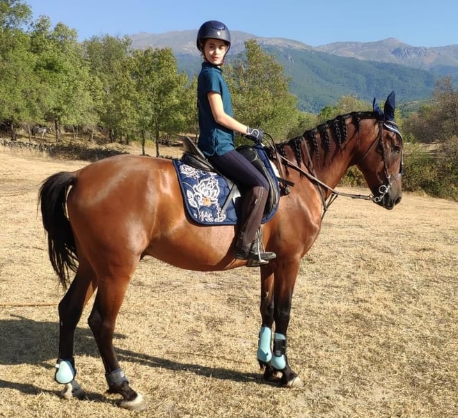 For sale: Spectacular 12-year-old Pure Spanish Horse (PRE) in chestnut. Breed: Pure Spanish Horse (PRE) Year of Birth: 2013 Height: 16.1 hh Color: Chestnut This magnificent 12-year-old specimen is renowned for its nobility and versatility. With a gentle and calm temperament, it is ideal for riding lessons, suitable for both beginners and more experienced riders. Key features: - Classical Dressage: Trained in classical dressage, demonstrating elegant and precise movements. - Smooth Trot: Its extended trot is spacious and comfortable, making learning enjoyable for the rider. - Flying Changes: Currently in training to perform flying changes, showing great willingness and aptitude to progress further in this discipline. This horse is perfect for those seeking a reliable, high-quality partner—whether for riding lessons, dressage competitions, or simply enjoying relaxed hacks. Don't miss the opportunity to acquire this outstanding PRE, with all the qualities to become a true champion and an inseparable riding companion. For more information or to arrange a visit, please contact us. We look forward to introducing you to your future equestrian partner!