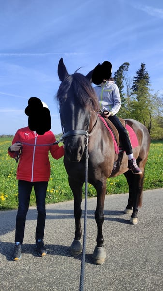 Kenzo ist ein 13 jähriger PRE Wallach. Er ist ca. 170cm gross und sehr lieb in Umgang. Ich wollte ihn eigentlich als Therapiepferd einsetzten, leider ist er dafür nicht geeignet. darum wünsche ich mir für ihn eine Person die ihn weiter fördert und ihn die Zeit geben kann die er braucht. Er macht toll mit bei Bodenarbeit, longieren, Hufschmied, reiten auf Platz und in der Halle. Er ist sehr gewillt es richtig zu machen und lernt sehr schnell. Er hat viel Potenzial für Dressur, ist sehr fein an den Hilfen und braucht eine ruhige Hand. Im Gelände hat er sehr viel "Go" da braucht er viel Sicherheit und jemanden der erfahren ist. Also kein Anfänger Pferd. Er steht in 8484 Weisslingen ZH