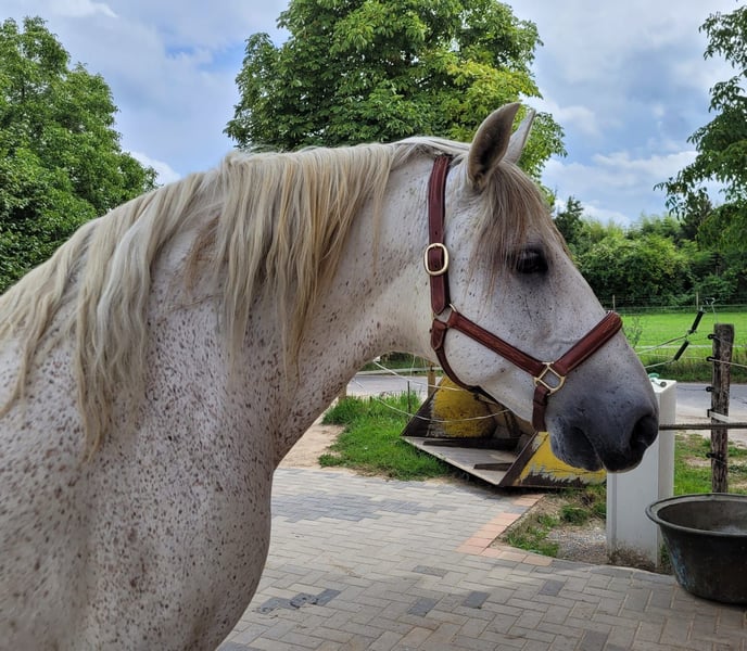 For financial reasons, I am reluctantly looking for a new home for my horse, preferably with experience in laminitis or in a laminitis group. An option to "provide" the horse in exchange for covering ongoing costs is also conceivable. Price is negotiable, but a good home is the priority! Due to a poor training status, the horse is being offered as a (conditionally rideable) companion (see pictures). With certain training conditions, it can be rehabilitated; a custom saddle can be purchased along with it. Otherwise, it is very teachable and also interesting for groundwork, liberty work, and trick training. The bloodlines may be of interest to enthusiasts: Yeguada Militar (Agente, Maluso), Cartujano (including Novato, Americano, Hosco III and IV, Bilbaino III, Nevado III).
