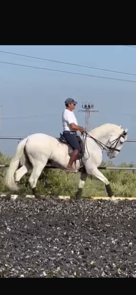 **For Sale PRE Horse - Gray, 172 cm** Unique opportunity for horse riding enthusiasts! A magnificent Purebred Spanish Horse (PRE), gelding, born in 2007, is offered for sale. This elegant gray stands at 172 cm, making him an ideal companion for both classical dressage and various equestrian activities. His balanced temperament and over 10 years of training in classical dressage make him suitable for riders of different experience levels, especially for children and novice riders. He is a very manageable horse, with a noble and willing character, perfect for those looking for a reliable partner in the arena. If you are interested in learning more about him or scheduling a visit, please do not hesitate to get in touch. Don’t miss the opportunity to bring home this exceptional horse!