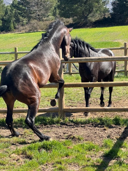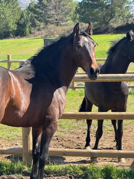 There are now new videos of the ridden horse! It is extremely safe and reliable, and was completely relaxed even on its third ride. This young PRE stallion, born in January 2023, combines a compact, baroque type with expressive movements and a curious, intelligent character. He is already backed and easy to handle, a promising young horse with charisma, quality, and great potential for the future. 📍 Details • PRE – full papers • Stallion • Born: January 2023 • Height: 15.8 hh (expected 16.1–16.2 hh) • X-rays clear • Piroplasmosis negative • Backed and easy to handle • Intelligent, expressive, and full of personality 📍 Location: Spain 📩 Private message for videos and more information 🚚 Worldwide transport can be arranged