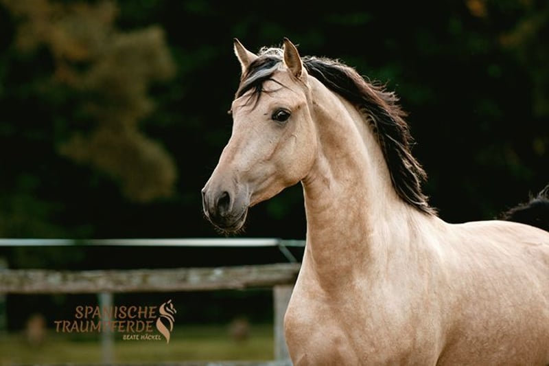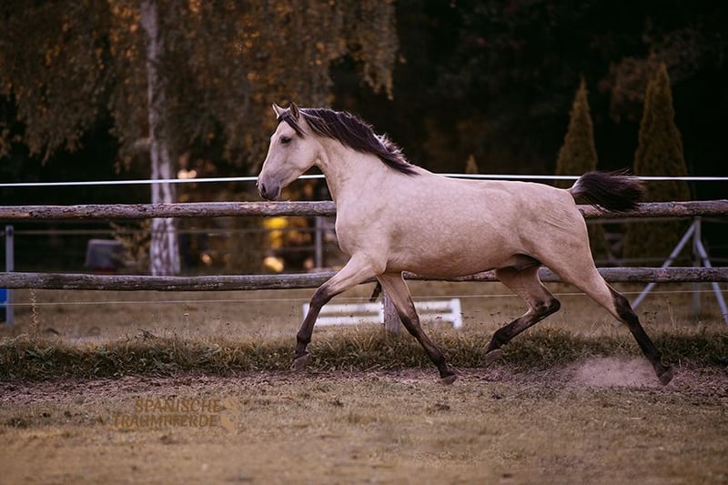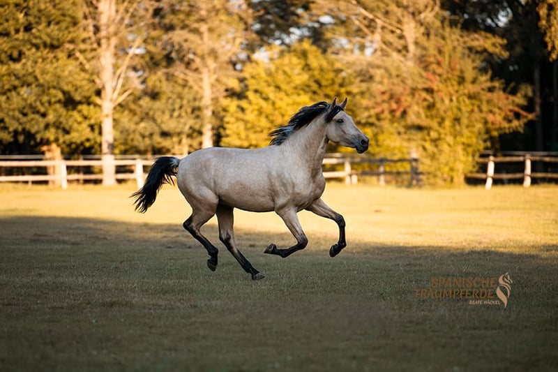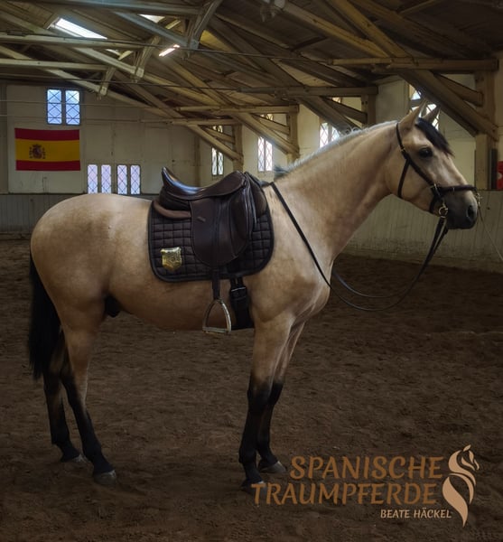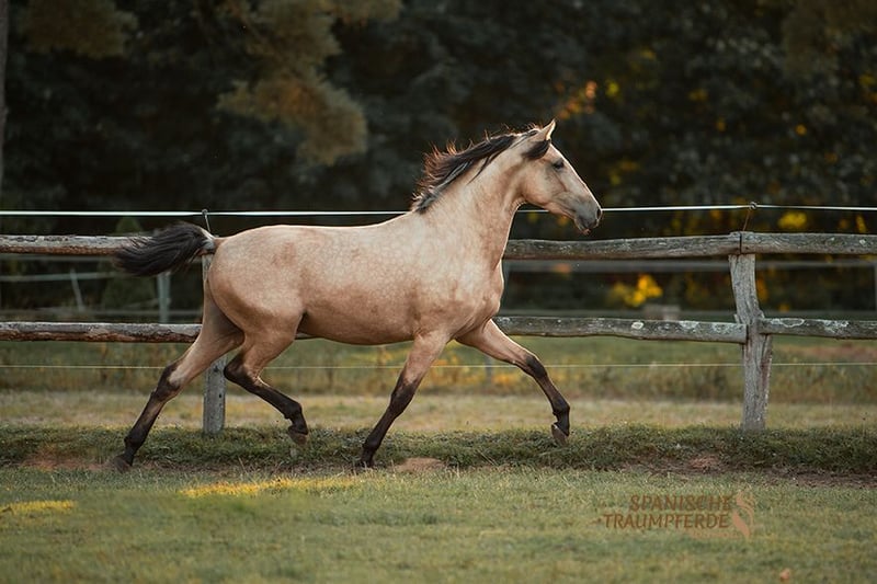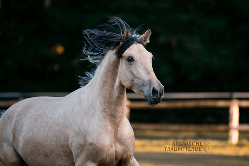Eine wahre Augenweide ist unser süßer, wahnsinnig lieber Kuschelbär ✨SKAR SH✨. Dieser wunderschöne falbfarbene PRE-Wallach liebt es gekrault und beschmust zu werden, ist im Umgang ein wahrer Schatz und hat ein unglaublich nervenstarken Charakter. Diese Charaktereigenschaften machen SKAR SH zu einem echten Familienpferd. Abgerundet wird sein Bild durch ein harmonisches, barockes Exterieur mit einem wunderschönen Köpfchen und unglaublich lieben Kulleraugen. Sein auffälliger zweifarbiger Behang setzt das I-Tüpfelchen auf dieses tolle Pferd. Altersgerecht steht dieser Schönling natürlich erst am Beginn seiner Ausbildung. Er kennt den Sattel auf seinem Rücken und hat auch schon das Reitergewicht gespürt. Dabei ist dieses zauberhafte Kerl unglaublich gelassen und entspannt. Nun wird dieser liebenswerte Wallach in Ruhe über Boden- und Zügelarbeit gearbeitet. SKAR SH ist ein Traum für denjenigen, der ein barockes Pferd in Sonderfarbe, mit einem guten und nervenstarken Charakter zum Selberausbilden sucht. Aufgrund eines röntgenologischen Befundes wird dieses zauberhafte Wallach weit unter Wert angeboten. Röntgenbilder liegen vor. Standort: 23795 Traventhal