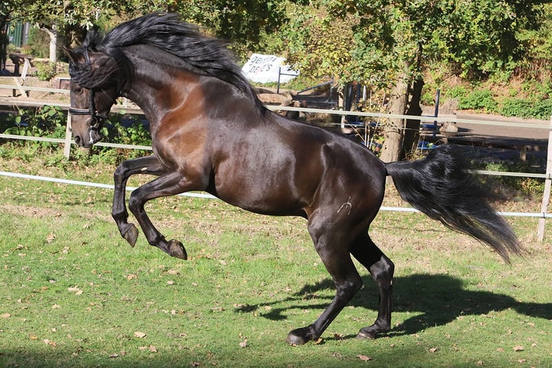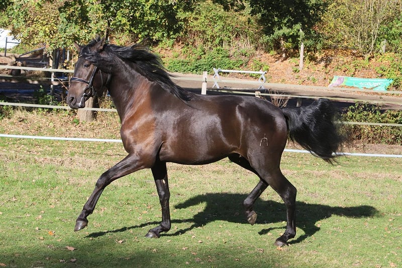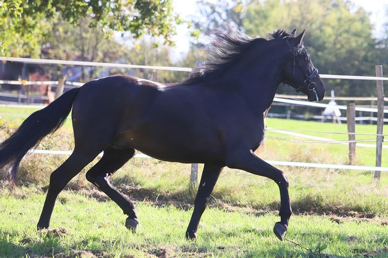 Este potro PRE de tan solo 3 años destaca por su carácter equilibrado, su presencia natural y su carácter encantador. Su nombre ya revela lo que lo hace especial: Encanto, que significa "Encanto" o "Magia", y eso es exactamente lo que transmite en todos los aspectos. Con su físico armonioso, su larga y espesa melena y su mirada expresiva, encarna la imagen del clásico Pura Raza Española. Su carácter es tan impresionante como su apariencia: cercano a las personas, amigable, atento y siempre dispuesto a hacer las cosas bien. Encanto ha sido montado suavemente en doma desde hace poco tiempo y muestra una actitud obediente, concentrada y muy receptiva bajo la silla. Se mueve con paso, trote y galope seguros, y ya demuestra buen equilibrio y disposición natural para la recolección, lo que lo convierte en un candidato ideal para una carrera en doma, en la disciplina de la Working Equitation o como un elegante caballo de ocio. Su linaje combina líneas probadas con la mejor tradición de cría española: Por parte de padre, Encanto proviene de la Yeguada Militar, con la importante línea de Remache, conocida por su bravura, fuerza y nobleza. Por parte de madre, lleva sangre de Escalera, Guardiola y Terry, que aportan tipo, expresión y un temperamento excepcional. Un joven potro que posee todas las cualidades para convertirse en un auténtico caballo de corazón y un compañero deportivo, un animal con inteligencia, belleza y alma. Encanto, un nombre que lo dice todo.