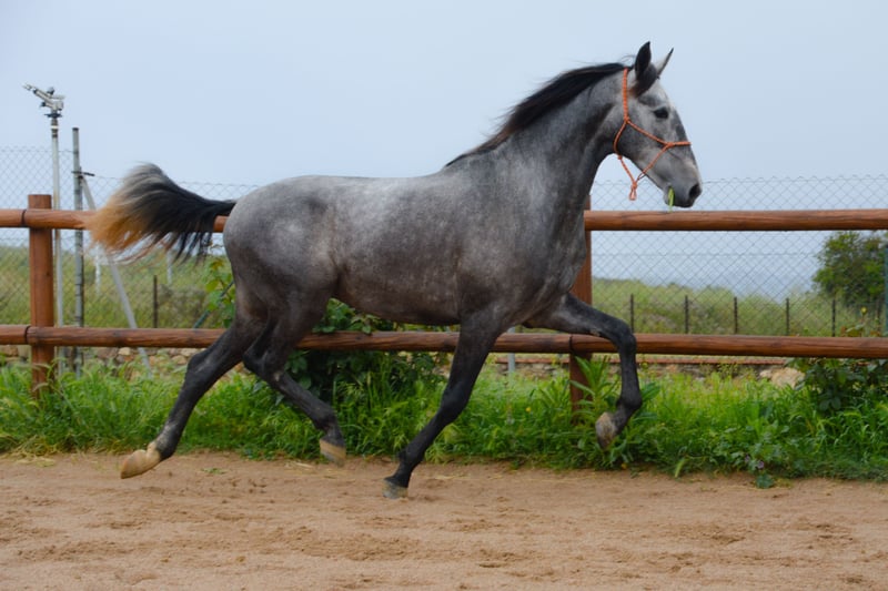 CURIOS V potro PRE tordo de 3 años 165 altura recien entrado del campo con muy buenos movimientos y morfologia empezando su desbrave Y empezandose a montar
