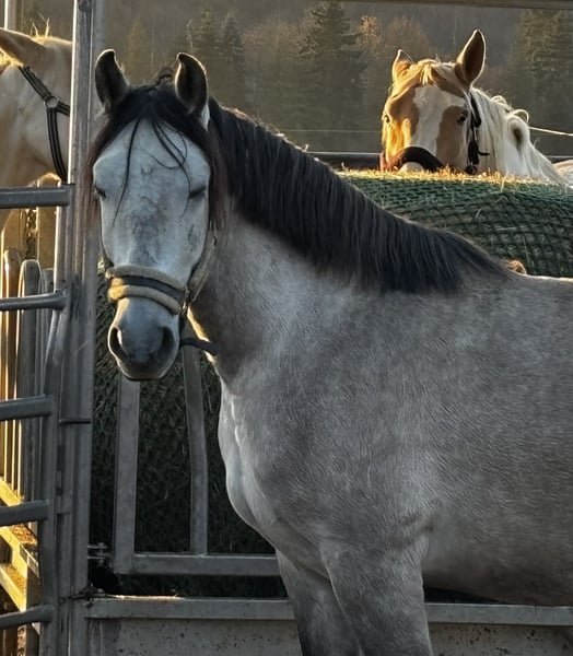Verkaufe PRE Wallach – Buckskin, 156 cm, geb. 12.04.21, ideal für Working Equitation Zum Verkauf steht ein wunderschöner PRE Wallach in beeindruckender Buckskin-Farbe. Mit einem Stockmaß von 156 cm ist er perfekt für Reiter, die ein quirliges, sensibles und reaktionsfreudiges Pferd suchen. Geboren im Jahr 2021 ist er sowohl körperlich als auch geistig noch in voller Entwicklung. Er braucht sehr lange, bis er seinem Menschen vertraut, sich an die Umgebung gewöhnt und Nähe zulässt. Hat man sein Herz gewonnen ist er bereit, mit seinem Menschen zu arbeiten. Er kennt Bodenarbeit, Stangen, Pylonen, Parelli Elemente und liebt lange Spaziergänge. In Spanien wurde er an Sattel, Trense und Reitergewicht gewöhnt. Ich habe ihn hier jedoch aufgrund seines Charakters vom Boden gearbeitet und mit Sattel und Trense logiert, sowie zwei dreimal drauf gesessen. Er wartet nun darauf ins Reitleben entlassen zu werden und sucht einen konsequenten sensiblen Reiter….. Bei Interesse und für weitere Informationen stehe ich gerne zur Verfügung