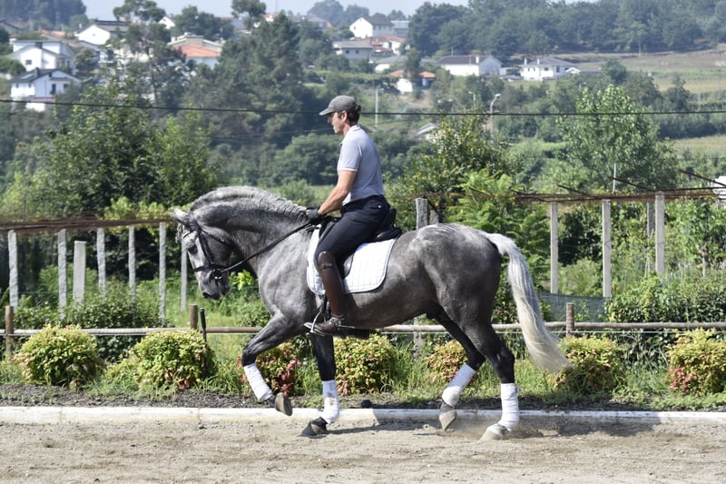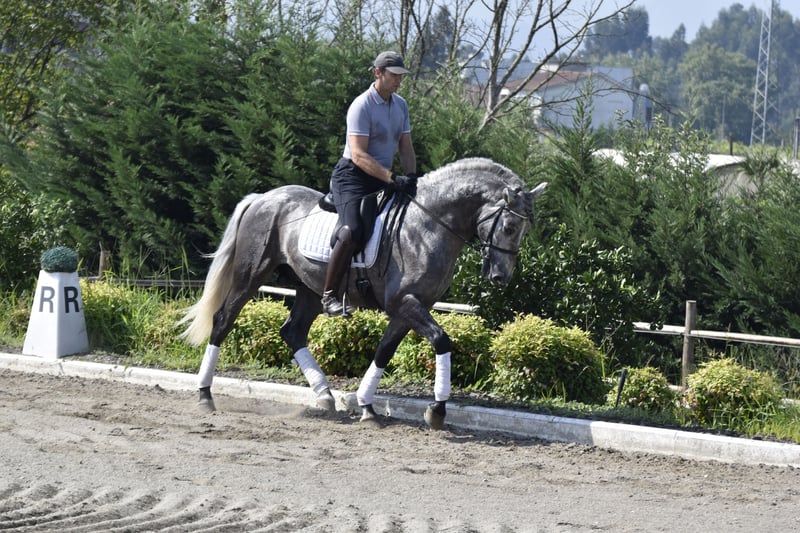 ARBOSO CSLR is a 3-year and 9-month-old Pura Raza Española (PRE) stallion, ANCCE-registered, and a Young prospect for both dressage sport and /or Working Equitation He stands out for his noble carácter, movement, and barroque conformation. GARBOSO is currently under saddle and has started basic lateral movements, showing aptitude for balance, rhythm, and collection. His mental focus and willingness make training enjoyable and progressive. He combines classical Spanish type with sport potential—a valuable stallion for riders aiming to develop a talented young horse from the start or breeders looking to introduce quality and temperament into their program. Age: 3 years and 9 months Breed: P.R.E. – Pura Raza Española Gender: Stallion Registration: ANCCE Training Level: Under saddle, starting lateral work Character: Noble, attentive, willing to learn Gaits: Uphill, elastic, with natural cadence Health: X-rays and Piro free