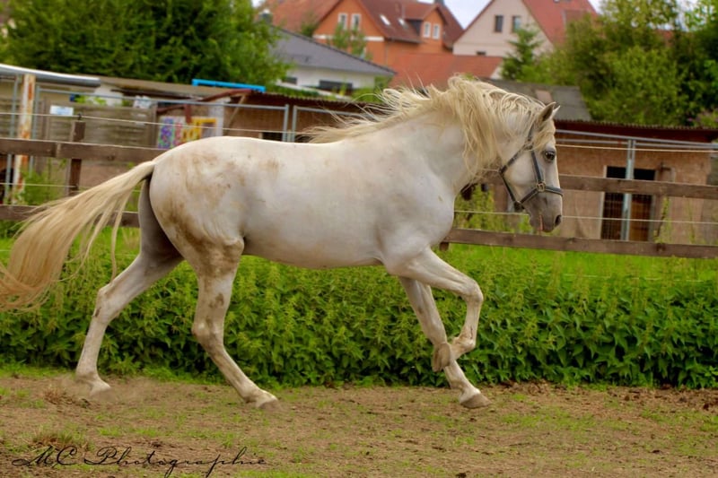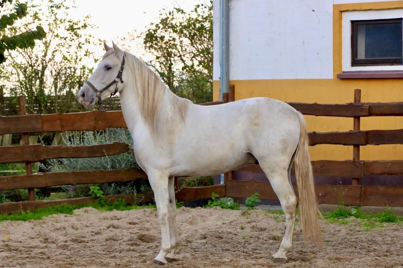 **Sale ad: Elegant PRE stallion for sale** We are offering an impressive PRE stallion for sale who impresses with his elegance and dressage potential. - Breed:** Pura Raza Española (PRE) - Sex:** Stallion - Year of birth:** 2020 - **Color:** Grey - Height:** 163 cm - **Discipline:** Dressage This young gray stallion not only impresses with his appealing appearance, but also with his excellent dressage qualities. With his harmonious conformation and ground covering movements, he is a real eye-catcher in the arena. His friendly nature and willingness to learn make him an ideal partner for ambitious riders looking for a reliable and talented young dressage horse. Lunged according to age so far. For further information or to arrange a viewing appointment, please do not hesitate to contact us.