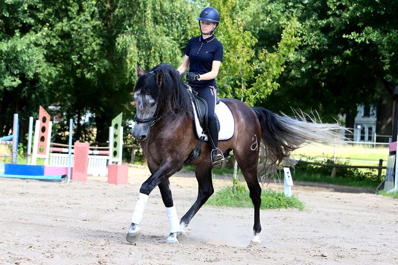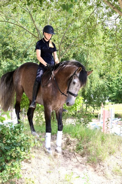 Dieser wunderschöne Wallach überzeugt nicht nur durch seine edle und rassetypische Ausstrahlung, sondern auch durch sein freundliches, lernwilliges, menschenbezogenes und aufgeschlossenes Wesen. Er ist ausgesprochen sozial und mag Kinder gerne. Er ist auf den Punkt geritten mit ausgezeichneten Schwung im Trab, der eine ausgeprägte Schwebephase hat. Piaffe und Passage beherrscht er in Perfektion, genauso wie alle Seitengänge in allen Gangarten, Galopppirouetten und Galoppwechsel bis hin zu Serienwechseln. Zudem zeigt er einen beeindruckenden spanischen Schritt, natürliche Passage an der Longe und ist auch in der Boden-/Freiarbeit weit ausgebildet. Selbstverständlich ist er entwurmt, geimpft, osteopathisch durchgecheckt und wurde regelmäßig dem Hufschmied vorgestellt (aktuell 4-fach beschlagen). -Röntgenbilder sind vorhanden. Er hat ANCCE Papiere. Ideal für Menschen, die Freude an der Arbeit mit einem talentierten und lernwilligen Pferd haben.