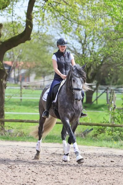 Wunderschöner PRE Wallach freut sich auf seinen neuen Menschen… Er ist mit 5 Jahren im optimalen Alter und wurde spät und schonend angeritten. Sehr gut erzogen und am Boden gearbeitet, sowohl im natural Horsemanship als auch in ersten Ansätzen in der klassischen Handarbeit und in der Freiarbeit. Er lebt auf der Koppel in der Herde, hat einen hohen Rang und geht sehr fair mit den anderen um. Vergangenes Jahr sind wir mit ihm auch schon einen Dorfumzug mitgeritten, was er ganz toll gemacht hat. Ansonsten wird er auf dem Reitplatz gearbeitet, geht spazieren und ab und zu sind wir mit ihm im Hänger unterwegs zum auswärts reiten. Der Bub alle möglichen Seitengänge und Biegungen, hat eine angenehme Arbeitsfreude und gibt sich Mühe. Er hat wunderschöne Gänge, ist sehr korrekt gebaut und hat eine gute Abstammung. Größe ca. 1,65m. Läuft auf Wassertrense und meist mit Dressur- oder Barocksattel. Kennt Schafe, Ponys, Hunde, Traktoren, Autos etc. Er ist ein absolutes Traumpferd mit dem man viel Freude haben kann. Die Hufe werden regelmäßig gepflegt, 1x im Jahr werden unsere Pferde dem Physiotherapeuten und Zahnarzt vorgestellt. Er ist Piroplasmose Träger, wahrscheinlich hat er sich das durch einen Zeckenbiss in dem riesigen Naturschutzgebiet eingefangen, wo er geboren wurde und aufgewachsen ist. Er wurde nie behandelt, es handelt sich um einen Zufallsbefund der von mir natürlich mit angegeben wird. Er ist ein sehr robustes Pferd und einfach in der Haltung. Er kennt und akzeptiert den Stromzaun und war zur Gewöhnung auch schon mal in der Box. Weitere Infos und Videos gerne auf Anfrage.