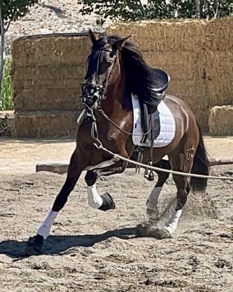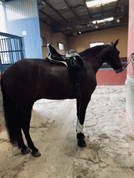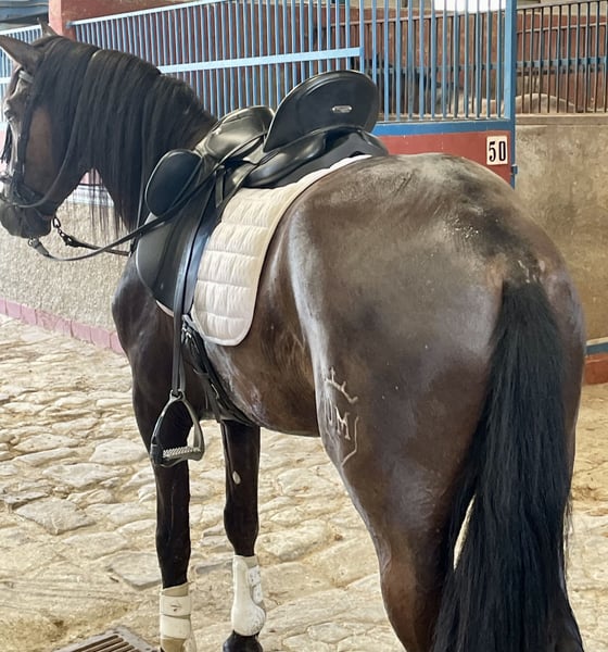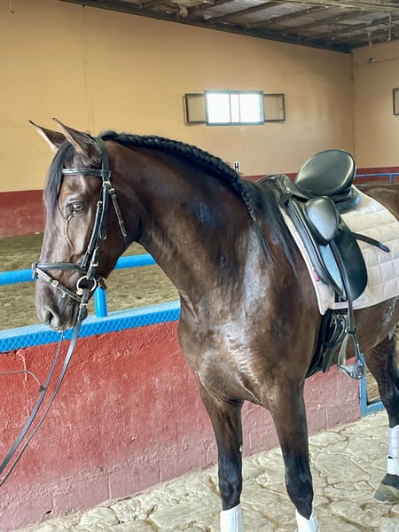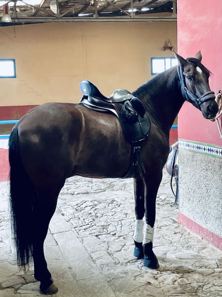 PRE black gelding, born in 2021, with a current height of 1.65m. He has an excellent character, is very sociable and affectionate, stands out for his docile nature and his ease of being ridden by any amateur rider, ideal for a Classical Dressage project. Horse with a super good character, good head, and very trainable. His level of riding allows him to perform lateral movements, leg yields, Spanish walk... which makes him an ideal option for those looking for a versatile horse with potential to compete in both dressage and to enjoy long rides in the countryside, either alone or accompanied by other horses. Complete ANCCE documentation. Great movement and elasticity. Soft in the mouth and responsive to aids. He is a very trainable horse for a rider who needs a horse for competition. Negative for Piroplasmosis.