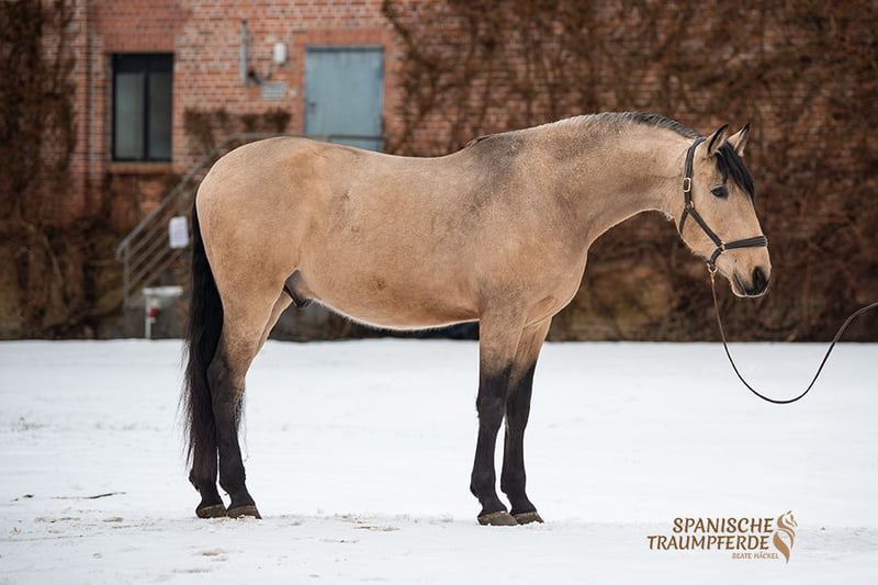 Was für ein zauberhaftes Pferd!!! Unser fünfjähriger PRE-Falbwallach ✨ROLEX SH✨ ist ein ganz wundervolles Pferd und seinem Namen zurecht, ein exklusiver Vertreter seiner Art. Dieses Pferd ist im Umgang ein wahrer Schatz😍, unter dem Reiter sehr leichtrittig und angenehm weich zu sitzen. Ganz besonders interessant ist seine Großrahmigkeit. Für die Liebhaber des etwas größeren spanischen Pferdes ist ROLEX SH mit seinem derzeitigen Stockmaß von 171cm das ideale Pferd. Dazu kommt sein traumhafter Behang und seine wundervolle Sonderlackierung. Alles in allem ein PRE zum Verlieben - bereit für Freizeit, Ausbildung und gemeinsame Abenteuer. Videos sind auf meiner Homepage zu finden: www.spanische-traumpferde.de Röntgenbilder liegen vor. Standort: 23795 Traventhal Ein Kennenlernen unseres ROLEX ist nach Terminabsprache nahezu jederzeit möglich. Für diesen Termin nehmen wir zum Schutz unserer Pferde eine Pauschale von 50,-