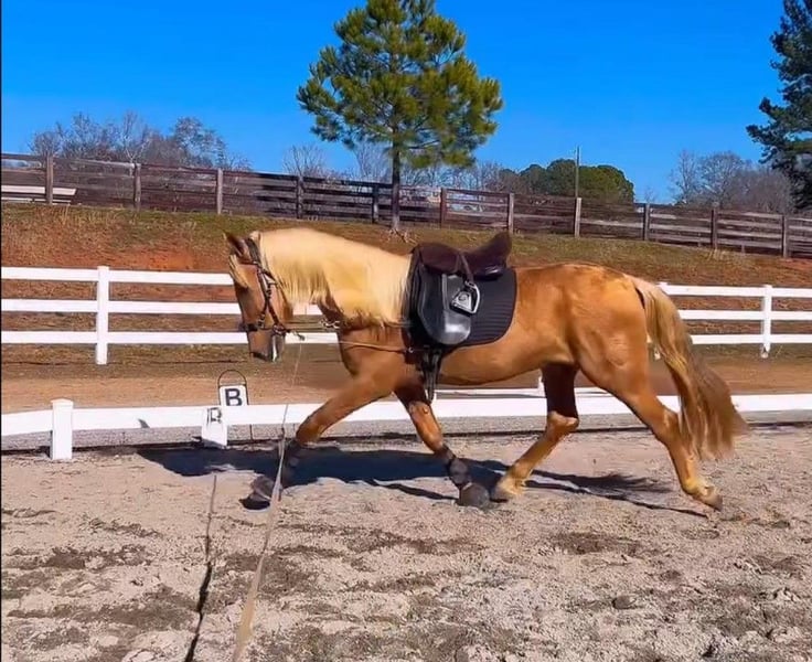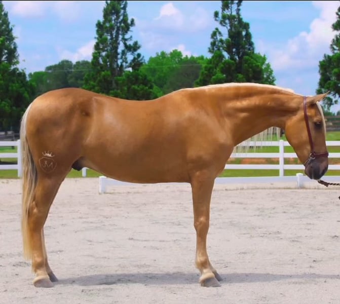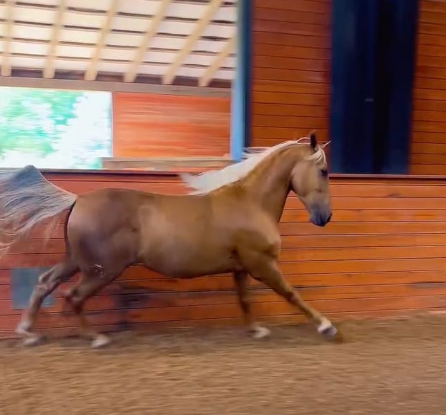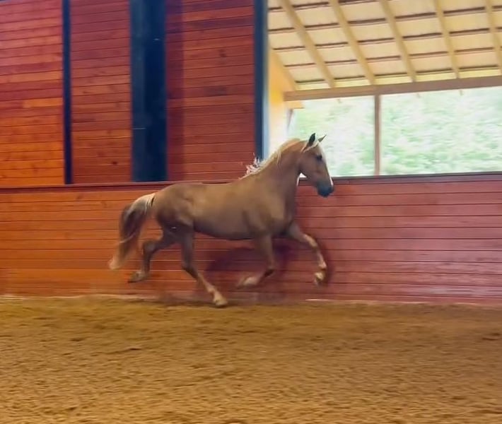 Meet Cantante, a breathtaking 4 year-old golden palomino P.R.E. gelding, radiating elegance, kindness, and charisma. This young star captivates everyone with his agile movements and expressive gaits, lighting up the arena & always turning heads. His lineage includes numerous Spanish champions and qualified stallions in Spain, including REMACHE XIII, YACO II, GAVILAN and more. It is very rare to find his bloodlines and quality in the palomino color. He is a treasure! Registered with ANCCE studbook (Spain). In professional training, and recently started under saddle, Cantante showcases an exceptional work ethic, making him a perfect partner for an ambitious amateur in a training program. His versatility shines, poised to excel in dressage, working equitation, or as a dazzling exhibition or liberty horse. He is still growing and measures apprx 15.3H and expected to grow more. Don’t miss the chance to sculpt this extraordinary talented rare palomino, ready to blossom into a true champion. Contact us today to meet Cantante. He may be purchased and remain in training while being prepared for an amateur partner to embark on his new adventures. Located near Athens & Atlanta, GA VIDEO LINKs on our website and on youtube