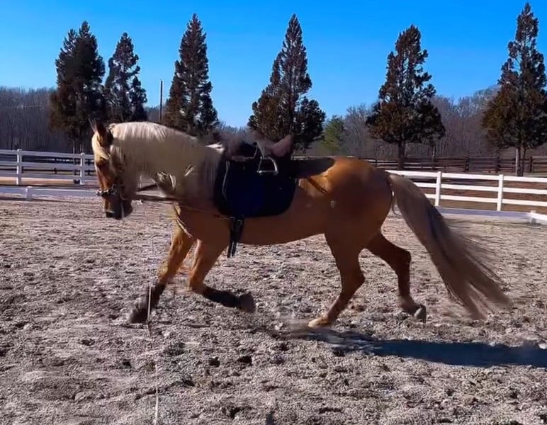 Rencontrez Cantante, un magnifique hongre P.R.E. palomino doré de 4 ans, rayonnant d'élégance, de gentillesse et de charisme. Cette jeune étoile captive tout le monde avec ses mouvements agiles et ses allures expressives, illuminant l'arène et attirant toujours les regards. Sa lignée comprend de nombreux champions espagnols et des étalons qualifiés en Espagne, y compris REMACHE XIII, YACO II, GAVILAN et bien d'autres. Il est très rare de trouver ses lignées et sa qualité dans la couleur palomino. C'est un trésor ! Enregistré au livre généalogique ANCCE (Espagne). En formation professionnelle, et récemment monté, Cantante démontre une éthique de travail exceptionnelle, ce qui en fait un partenaire parfait pour un amateur ambitieux dans un programme d'entraînement. Sa polyvalence brille, prêt à exceller en dressage, en équitation de travail, ou comme un cheval d'exhibition ou de liberté éblouissant. Il est encore en croissance et mesure environ 15,3 mains, avec une attente de croissance supplémentaire. Ne manquez pas la chance de façonner ce palomino rare et extraordinairement talentueux, prêt à s'épanouir en un véritable champion. Contactez-nous dès aujourd'hui pour rencontrer Cantante. Il peut être acheté et rester en formation tout en étant préparé pour un partenaire amateur pour commencer ses nouvelles aventures. Situé près d'Athènes et d'Atlanta, GA LIENS VIDÉO sur notre site web et sur YouTube.