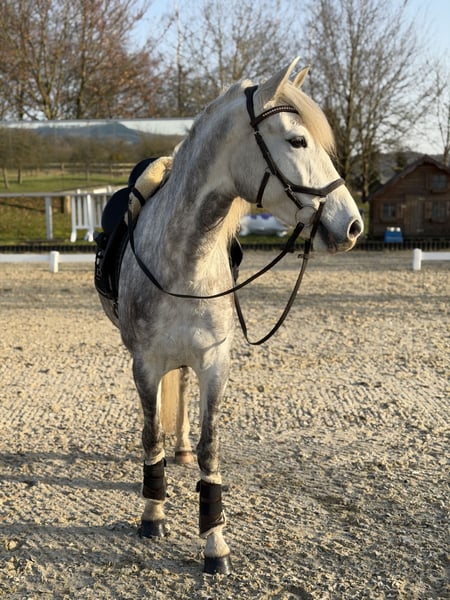 Unser selbstgezogener 6-jähriger PRE Wallach Palermo sucht ein neues Zuhause. Er hat ein Stockmaß von 160cm. Da er in jungen Jahren eher zierlich war wurde er schonend angeritten und hat sich in dieser Zeit toll entwickelt und schön ausgelegt. Er ist immer motiviert und hat Freude an der Arbeit sowohl vom Boden aus, als auch unter dem Reiter in der Halle, auf dem Platz oder bei einem schönen Ausritt. Er ist mit positivem Go ausgestattet aber immer regulierbar. Wenn man ihm als Reiter Sicherheit und Vertrauen gibt, ist auf ihn immer Verlass und er geht überall entlang. Er zeichnet sich vor allem durch seinen liebenswerten und sympathischen Charakter aus. Er ist ein Pferd zum Verlieben, welches einem jeden Tag ein Lächeln ins Gesicht zaubert. Er baut schnell eine Bindung zu „seinem Menschen“ auf und macht im täglichen Umgang einfach Spaß. Er ist ein ehrliches, motiviertes Pferd mit tollem Charakter, das nun seinen passenden Menschen sucht.