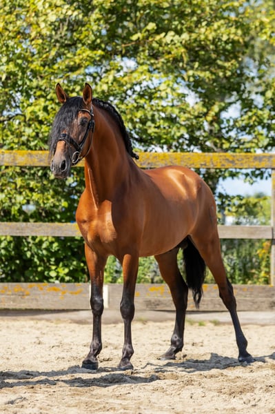 For sale is this beautiful 5-year-old Spanish gelding standing at 1.64 m. Full ANCCE papers. Helio has a great character, is very friendly, cooperative, and respectful. Very tolerant with other horses. Helio is well forward and has spacious gaits. He is lightly backed in all basic gaits, making him the ideal partner for someone who wants to train their horse themselves. Helio is not easily impressed, is familiar with tractors, children, dogs, and other livestock! Clinically and radiographically approved for sports (including neck and back). Treated by a dentist and osteopath. Videos can be requested via WhatsApp.