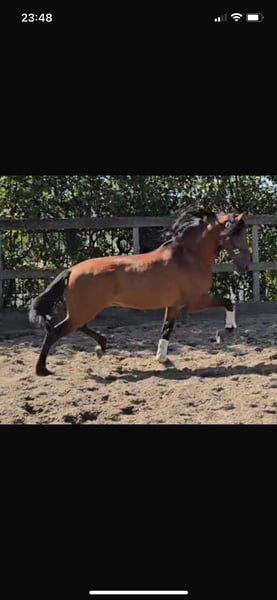 Zum verkauf steht dieser schöne 5-jährige spanische Wallach von 1,64 m. Helio hat einen tollen Charakter, ist sehr freundlich, mitarbeitend und respektvoll. Sehr erträglich mit anderen Pferden. Helio ist gut vorwärts und hat geräumige Gänge. Er ist leicht angeritten in alle grundgangarten, also der ideale Partner für jemanden, der sein Pferd selbst ausbilden will. Helio ist nicht so schnell beeindruckt, kennt Traktoren, Kinder, Hunde und anderes Vieh! Klinisch und Röntgen (einschließlich Hals und Rücken) für den Sport zugelassen. Von Zahnarzt und Osteopathen behandelt. Videos können über WhatsApp angefordert werden.