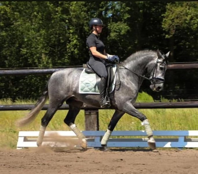Margo ist ein 6 Jahre alter barocker Pre Wallach mit vollen Papier . Margo ist absolut brav und ehrlich und vom Temperament eher eine Ruhige in sich ruhende Seele . Margo lebt bei uns im Offenstall in einer Gemischten Herde und steht auf teilbeschlag. Er ist Dressur und Freizeit geritten und hat sehr schöne gänge die ausbaufähig sind mit regelmäßigem Training. Er lässt sich gut händeln. Spanischer schritt und ansatz zur piaffe wurden auch geübt. Er ist herdenverträglich egal ob gemischt oder reine wallach, stuten oder hengstherde, er lässt sich super verladen und steht brav bei dem Schmied und hat keine probleme an fremden orten geritten zu werden. Kinder und hunde sind keine probleme. Ich suche ein fünf Sterne Zuhause mit endplatz für ihn. Bei mir gilt absolut Platz vor Preis. Bei interesse oder weiteren Fragen gerne anschreiben :)