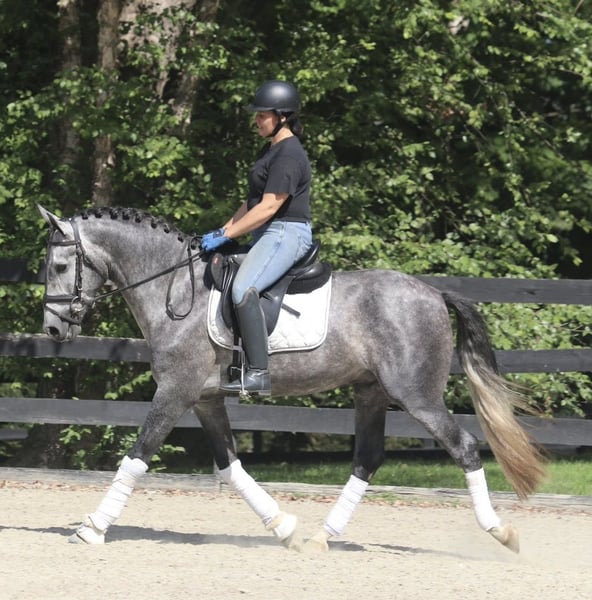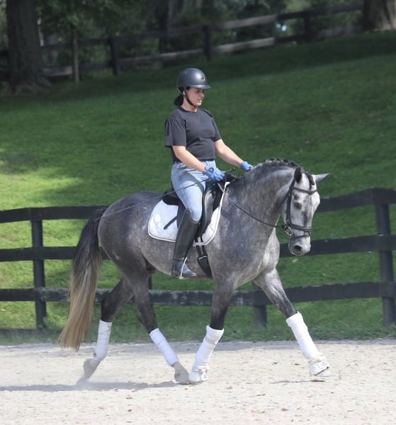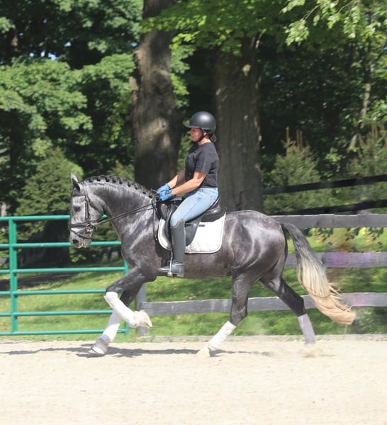 Zum Verkauf steht ein braver, sechsjähriger PRE-Wallach mit Papieren, ca. 1,67 m groß. Bolero ist gelassen und brav, aber auch sensibel. Daher suche ich jemanden, der ihn auf freundliche und respektvolle Weise ausbildet. Er ist fein im Umgang und gut erzogen an der Longe, aber Konsequenz ist wichtig. Zudem kennt er Bodenarbeit, Freiheitsdressur und Springen macht ihm ebenfalls großen Spaß. Ich halte ihn für ein tolles Pferd für beispielsweise Working Equitation, aber auch das Crossreiten würde er mit Sicherheit sehr genießen. Ein vielseitiges Pferd also! Seit letztem Sommer wird Bolero mehr unter dem Sattel geritten. Vorher stand er eine Zeit lang still, weil ich schwanger war, und wurde damals nur vom Boden aus gearbeitet. Unter dem Reiter reagiert er sehr gut auf das Sitzen, lernt schnell. Er ist jedoch sensibel und braucht klare Anweisungen, weshalb ich ihn nicht an Anfänger abgebe. Derzeit steht Bolero 24/7 draußen mit einem Unterstand, was ihm sehr gut gefällt. Er braucht einen Stall, in dem er mindestens tagsüber viel draußen sein kann. Er ist brav beim Hufschmied (hat nie Eisen getragen), wurde regelmäßig geimpft etc. Ich suche unbedingt ein liebevolles Zuhause für ihn. Ich wünsche ihm einen Besitzer, der ihm viel Abwechslung bieten kann und freundlich im Umgang mit Pferden ist. Der Preis ist bei einem guten Zuhause verhandelbar.