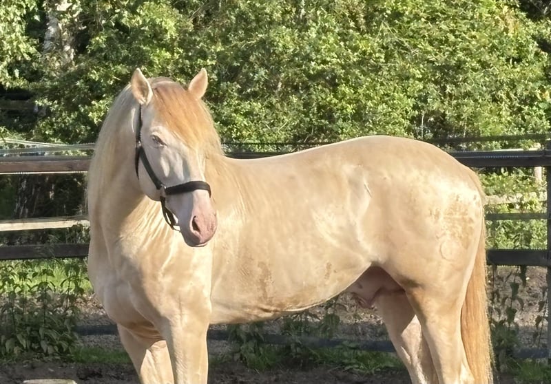Ten doskonały ogier Cremelo Pearl, czystej krwi PRE, to prawdziwa uczta dla oczu z podwójnym genem kremowym, co czyni go rzadkością w hodowli! Idealny do rozjaśniania ciemnych kolorów. Bardzo dobrze się go jeździ i jest fantastyczny w obcowaniu. W razie pytań proszę dzwonić ☎️ 01722420434