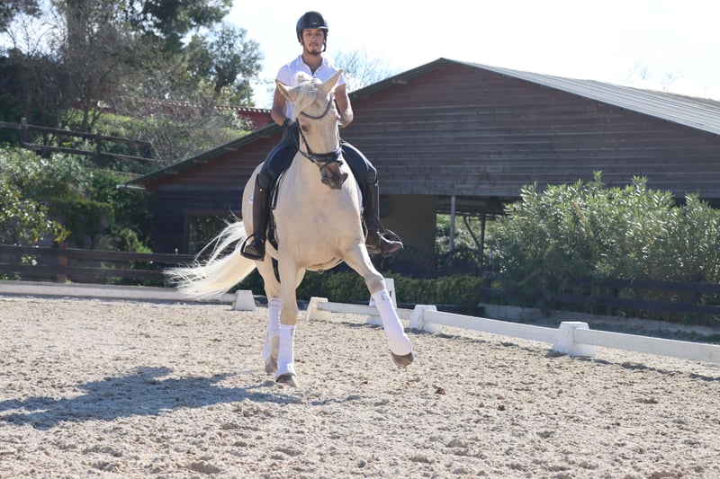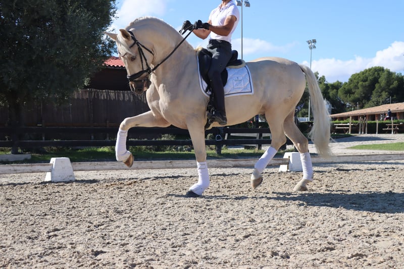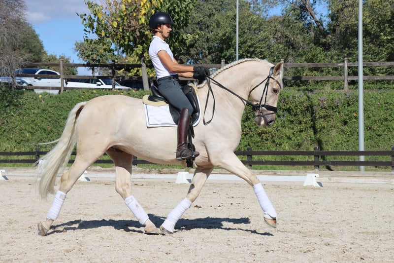 Bombproof gelding PRE ideal for novice riders and amateurs, he is developing really well at his level age. He is learning the changes and piaffe. Has excellent good temperament, he is not spooky horse and is very brave in the fields. He does all basic gaits, smooth transitions, laterals, shoulder in, half passes, counter canter. Pirofree based and clean x-rays on file.