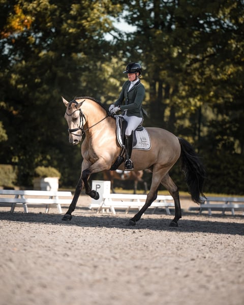 NL Stables Danilo SE is one that you don't come across very often. He has the character, the color, and the movement. With his enormous stride, rhythmic trot, uphill canter, and beautifully long body, this 5-year-old will certainly steal the show between the white fences. In addition to his talent for higher dressage sports, Danilo is a big cuddle bear who loves to be groomed and pampered. At the moment, Danilo is being prepared for the MCI selection process for the National/European Championships for young horses, which will take place this year in Le Mans. Danilo is fully approved, including his neck and back. www.nlstables.com